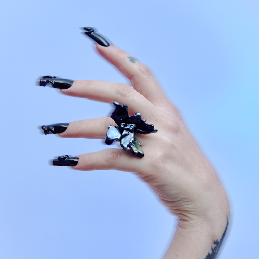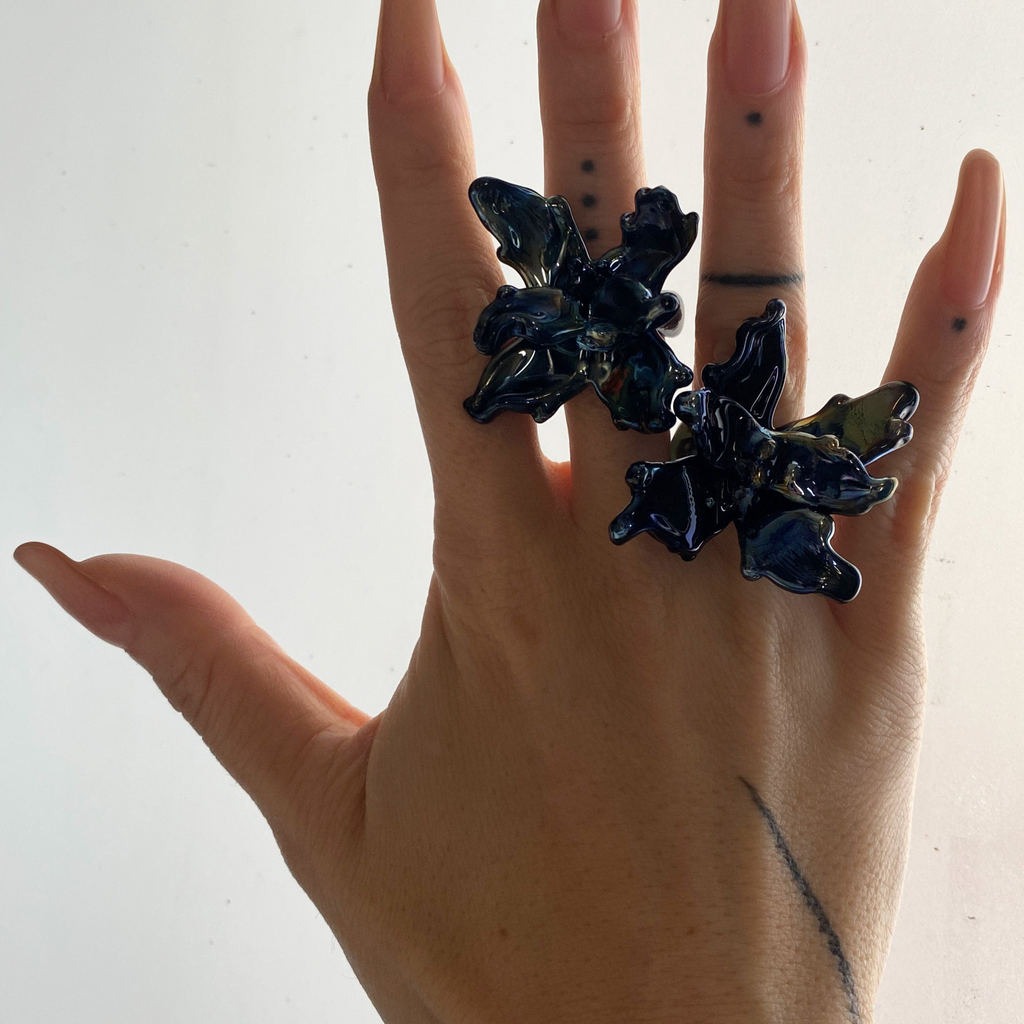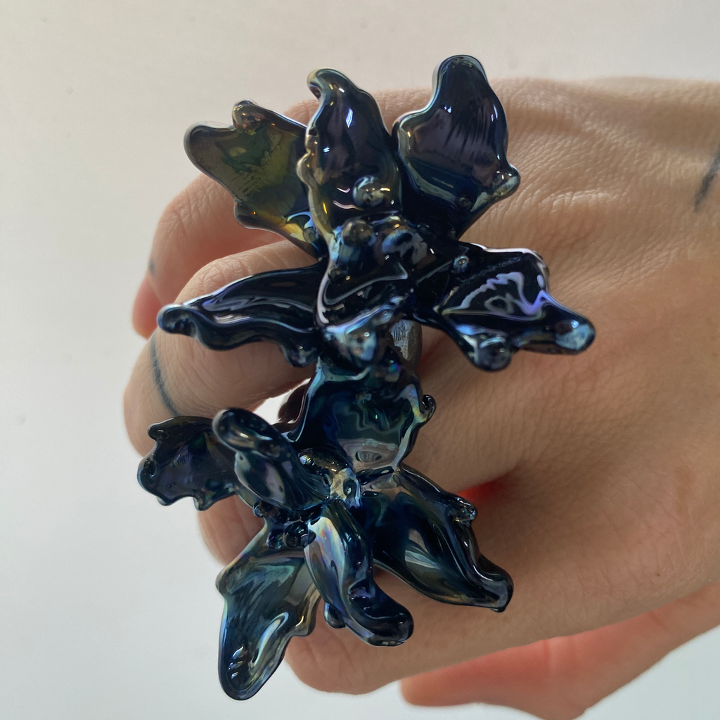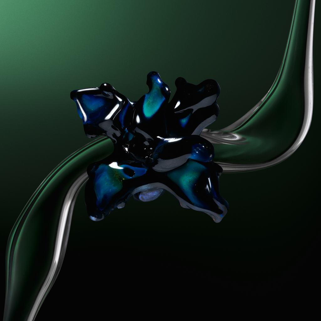 Made in Borosilicate glass and silver. Approximately 7 x 7cm.