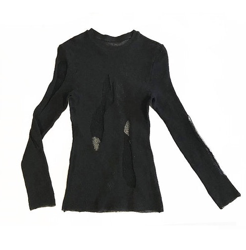Drop stitch knit with intentional drops. Tight fitted. Stretch material.