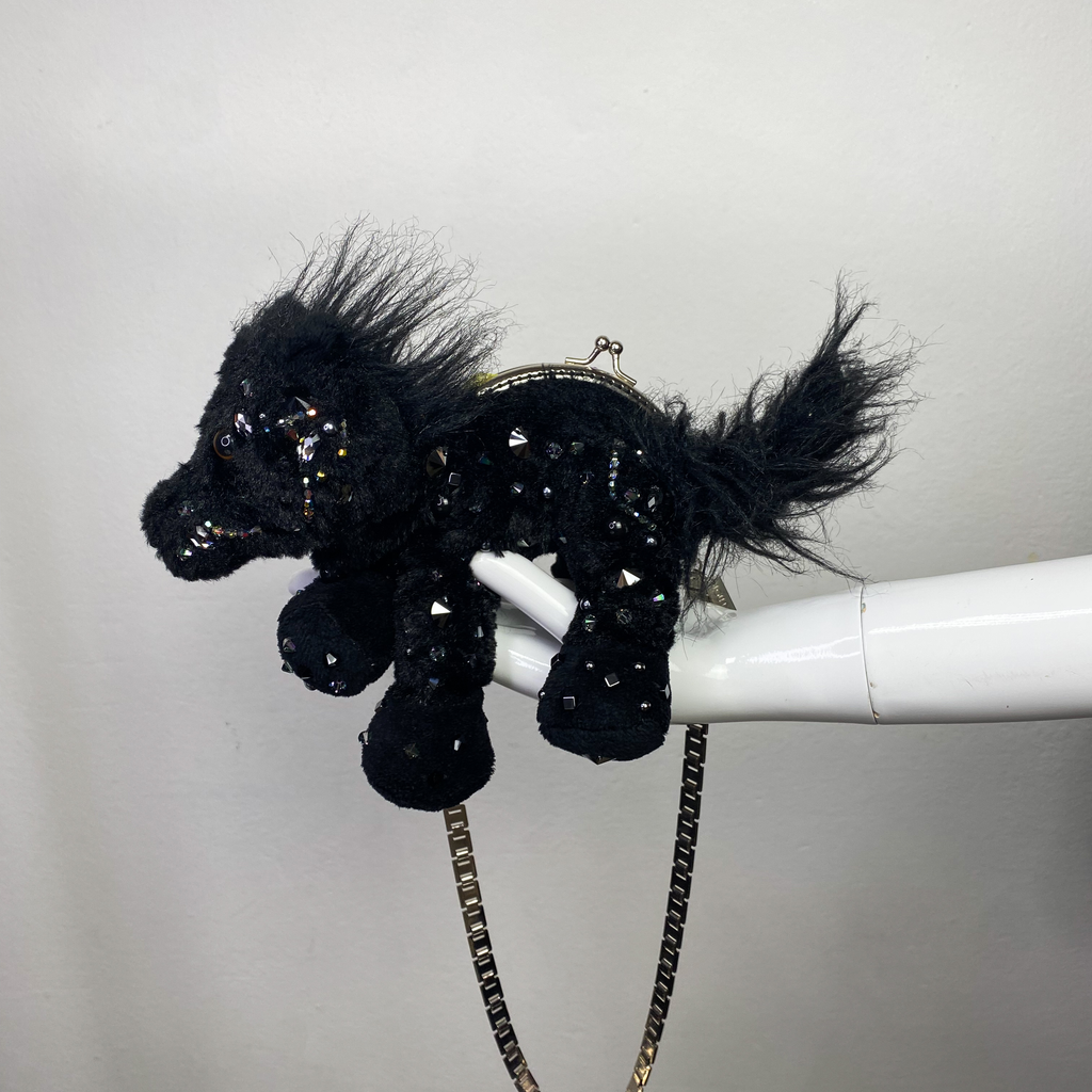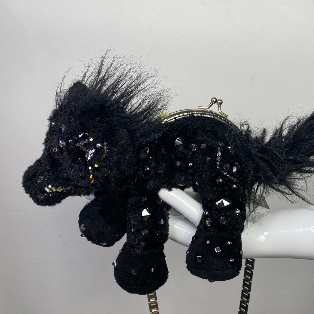 Redone stuffed animal, fully hand embroidered with glass beads and Swarovski crystals