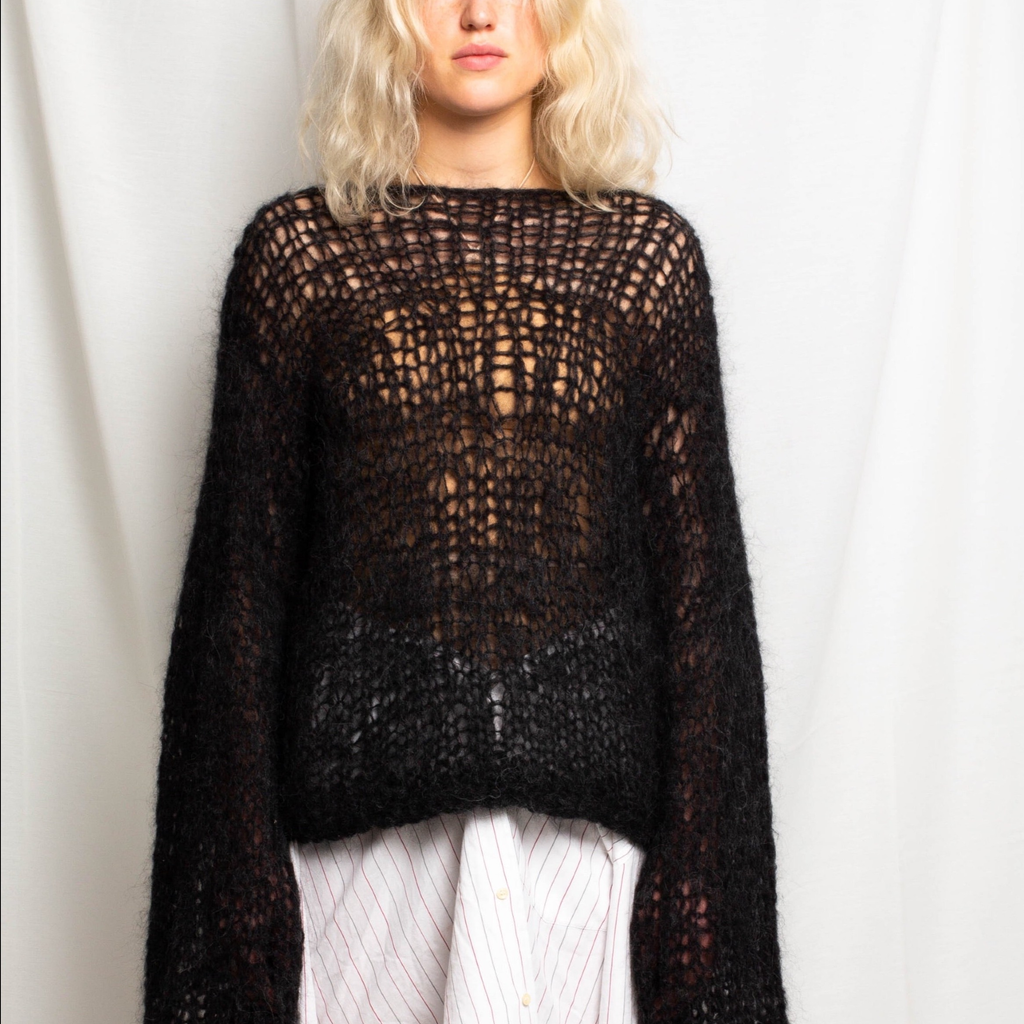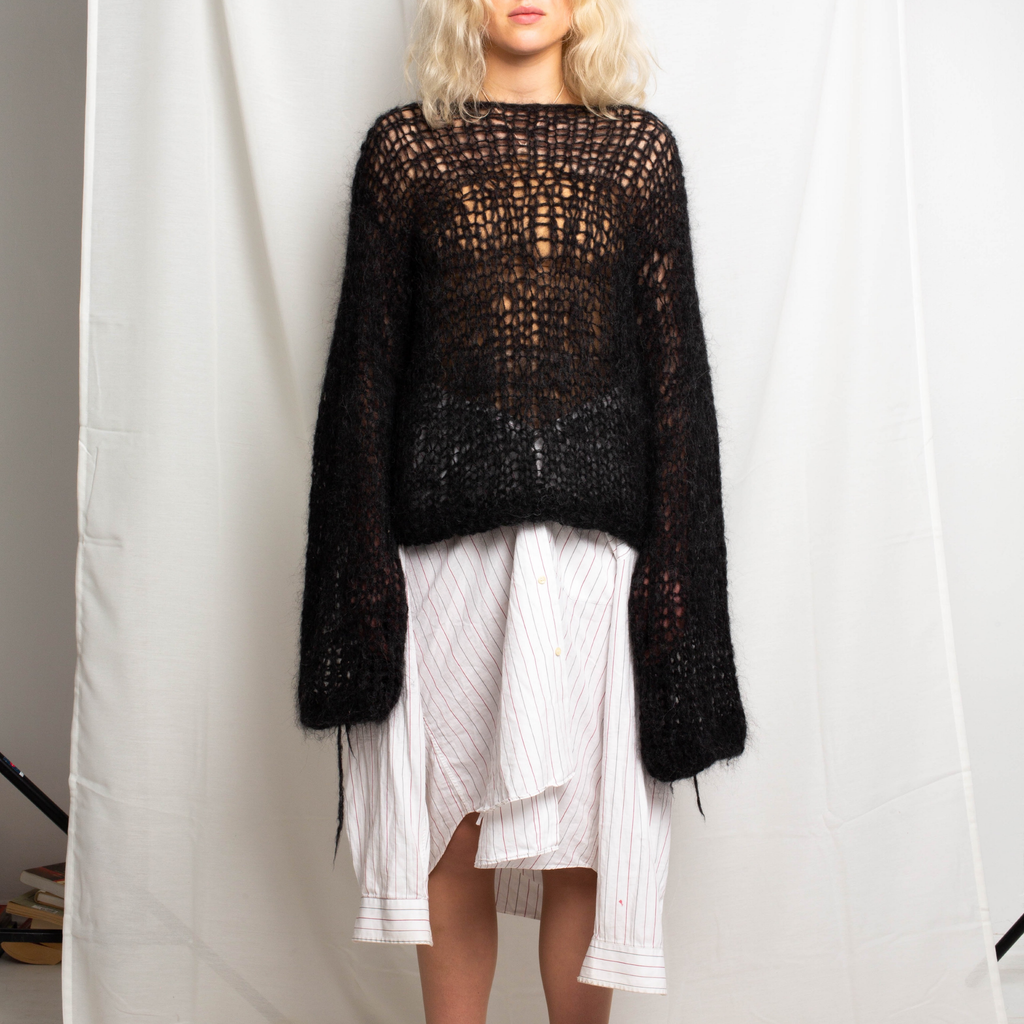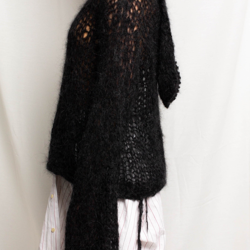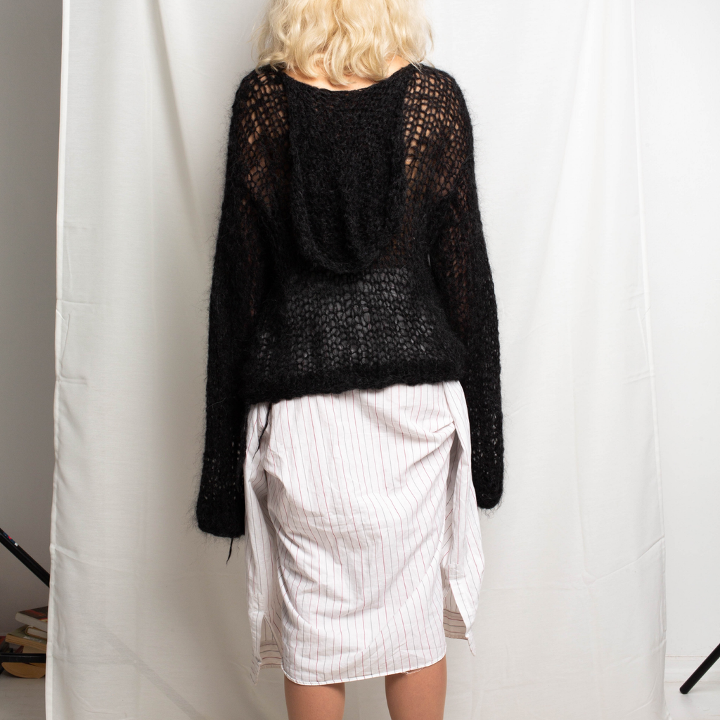 Hand knit hoodie with an oversized fit. Created with alpaca mohair.