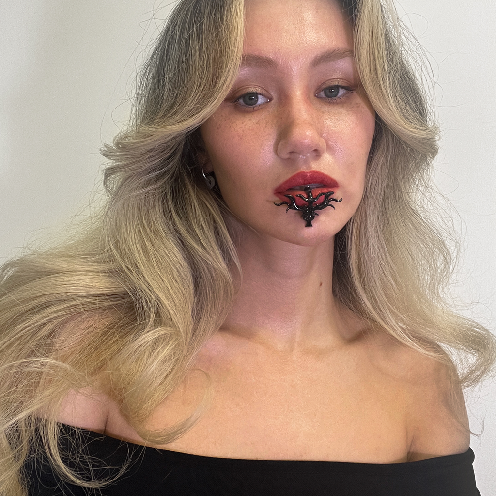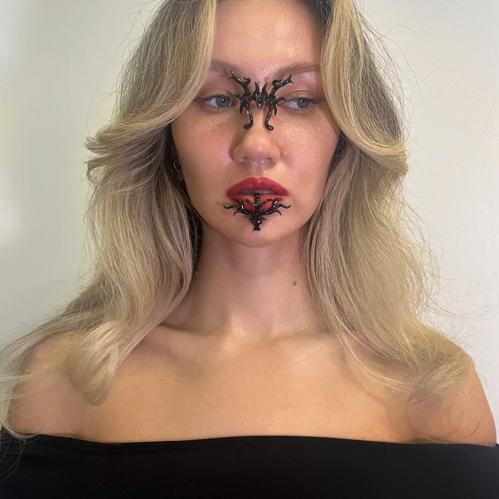 3D-printed organic-shaped Lip cuff. Sculpted and finished by hand to achieve a unique design.