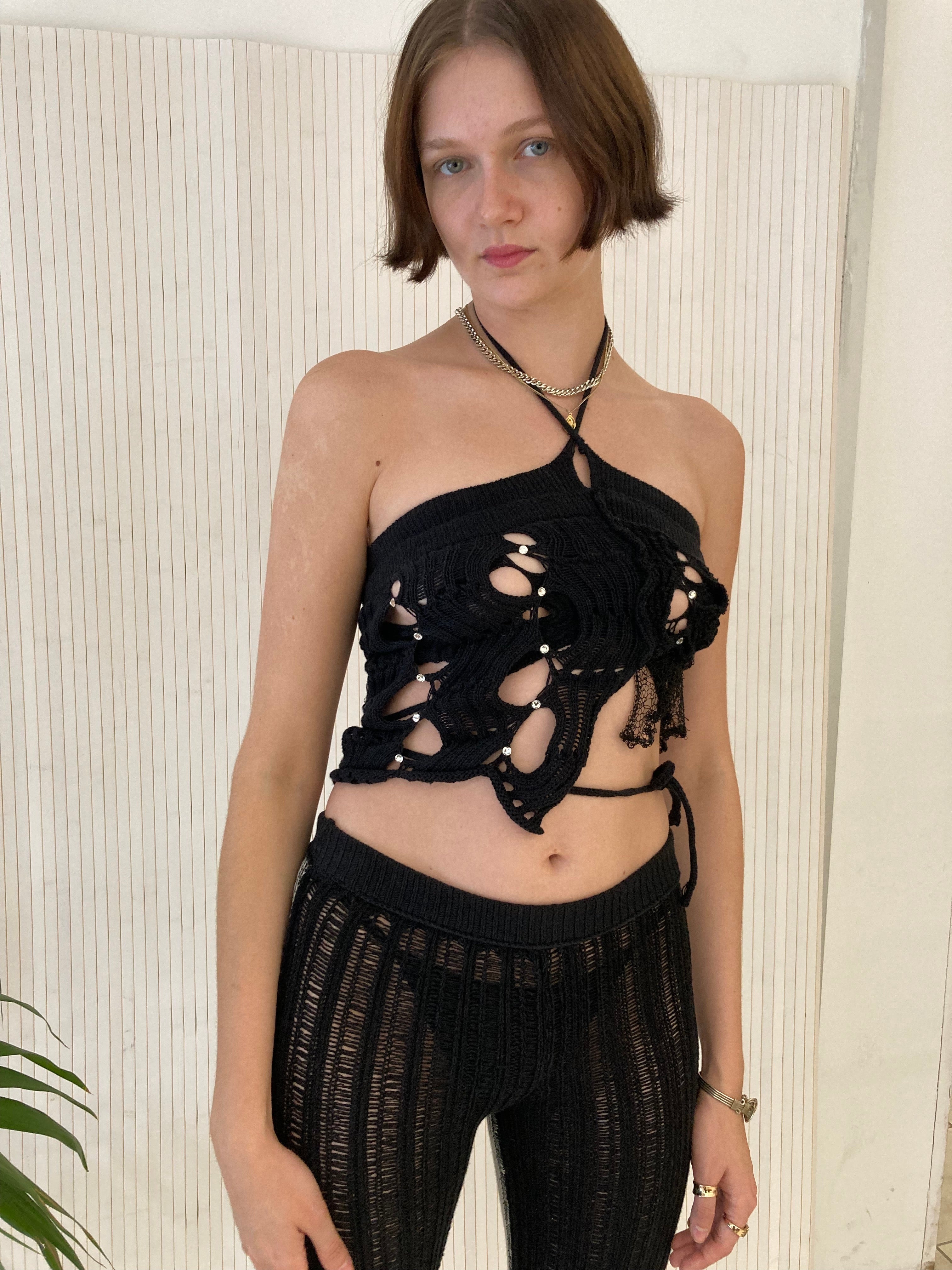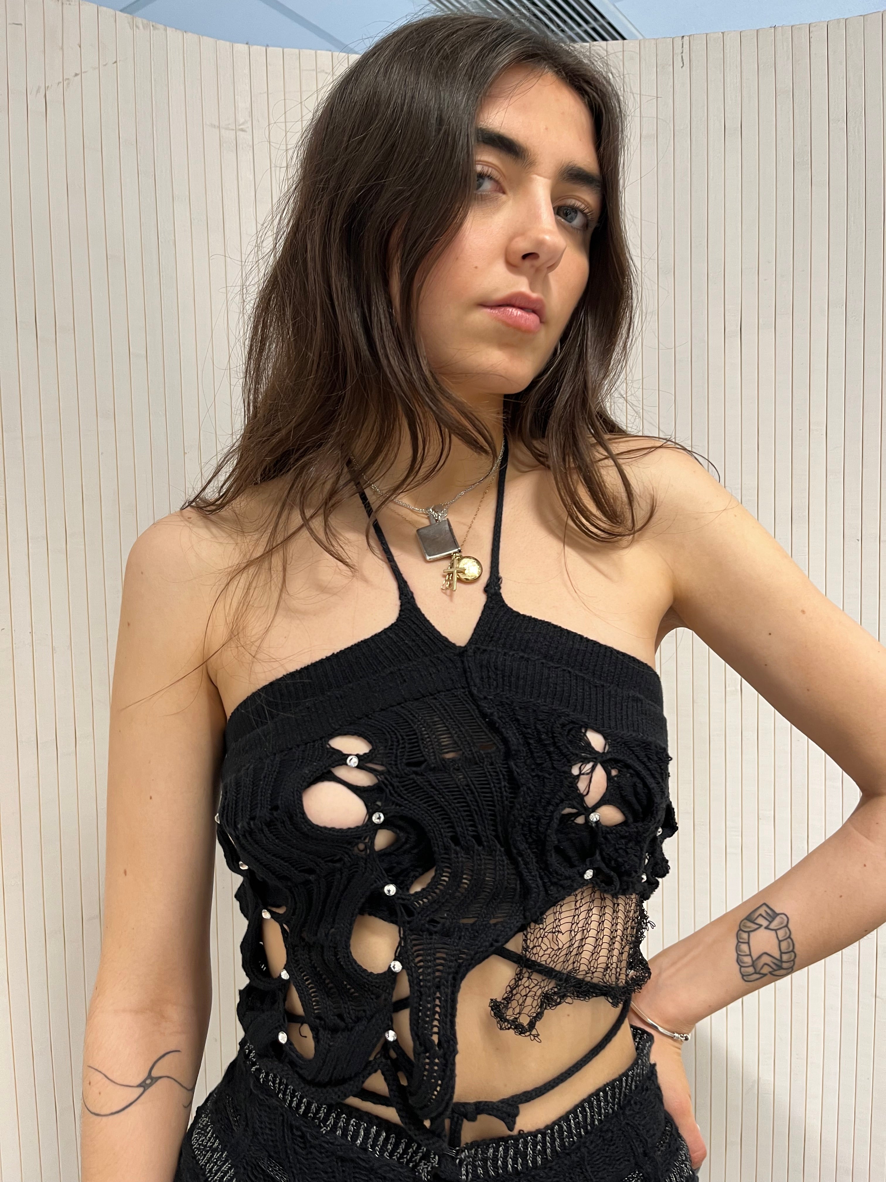 Black Mesh Top - with Silver stone embellishment Size XS 30-degree wash or hand washCotton, viscose and Lycra