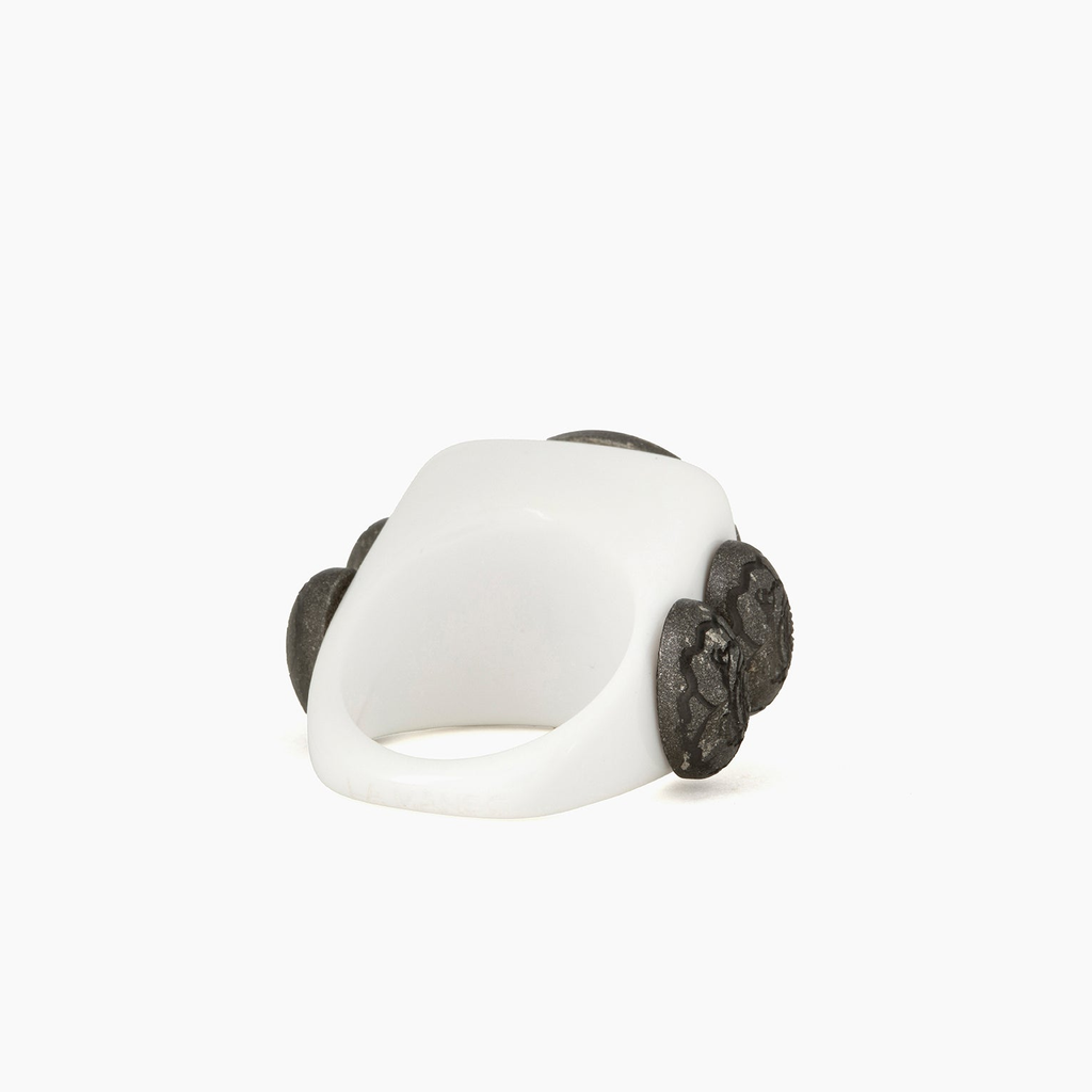 Every Black & White ring is unique and has its own personality. Each piece is created from a recovered mold found at an old shop in Barcelona, and is individually handcrafted at La Manso's atelier.