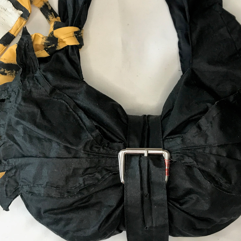 Hurtence is a London-based millinery and accessories brand by Madeline Thornalley. Hand crafted from mainly second hand fabrics and material, each piece encapsulates a theme on characters, personas, disguises and the lack thereof. Hurtence’s pieces are soft armoured ‘mental tuning devices’.