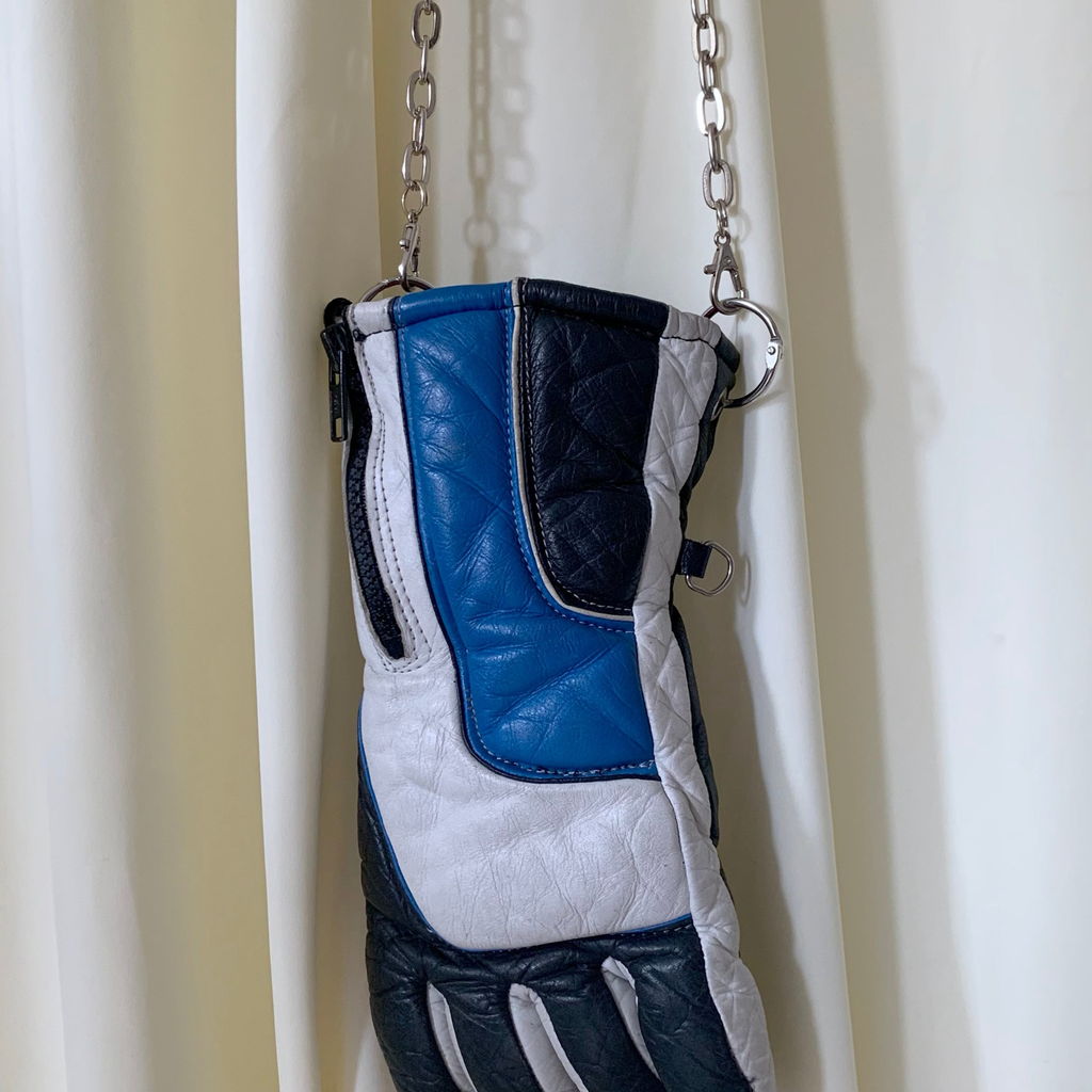 Phlegm is a London-based accessories brand by Phlegm Greene. Each creation, whether it be a bag or belt, features a repurposed glove. From football gloves to motorcycle gloves, boxing gloves to heat resistant gloves, Phlegm upcycles and transforms each glove into one of one pieces.