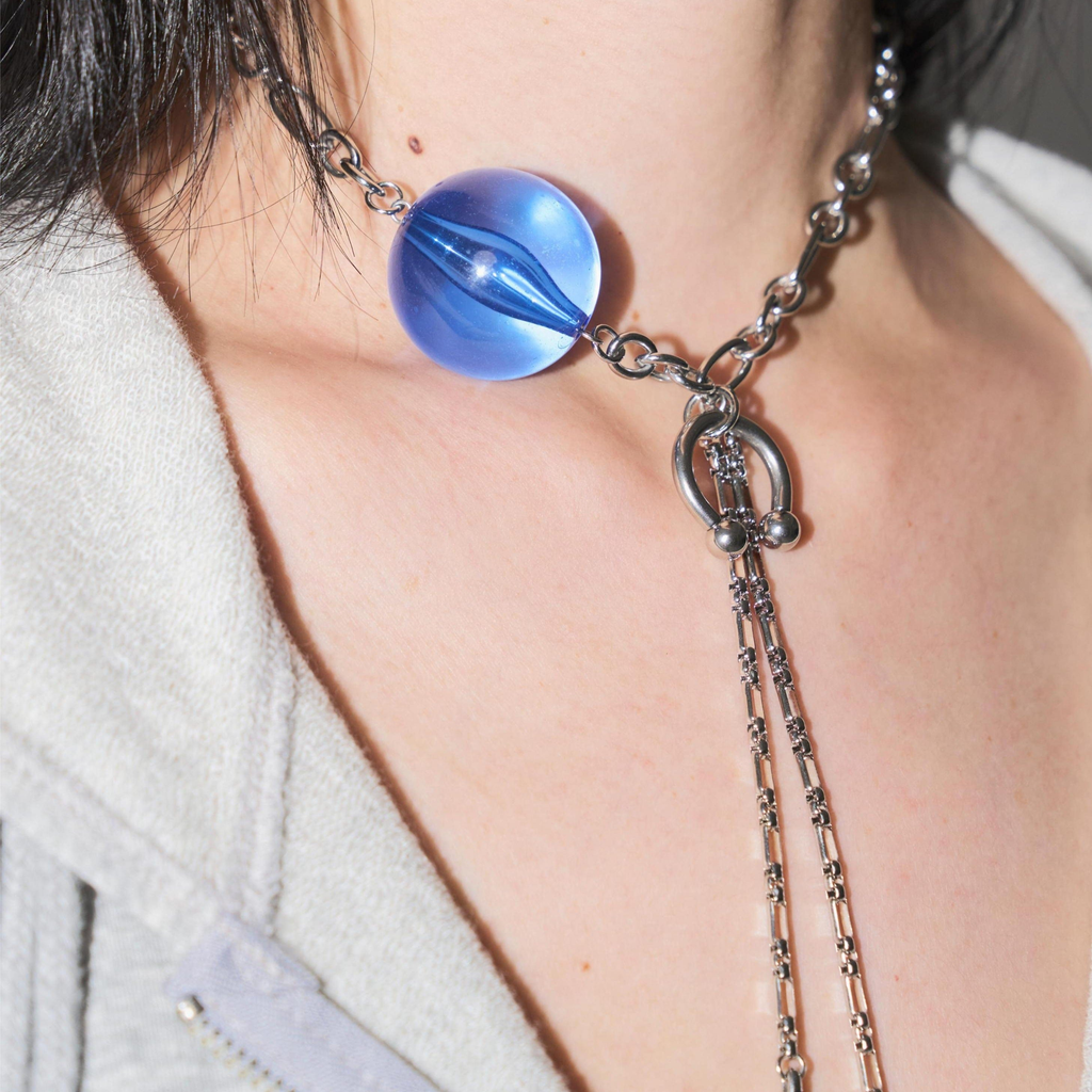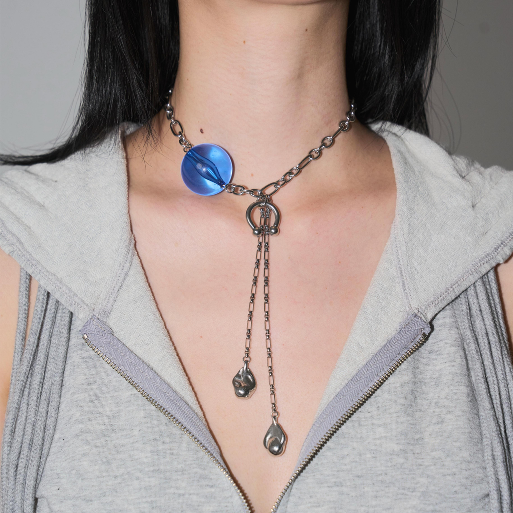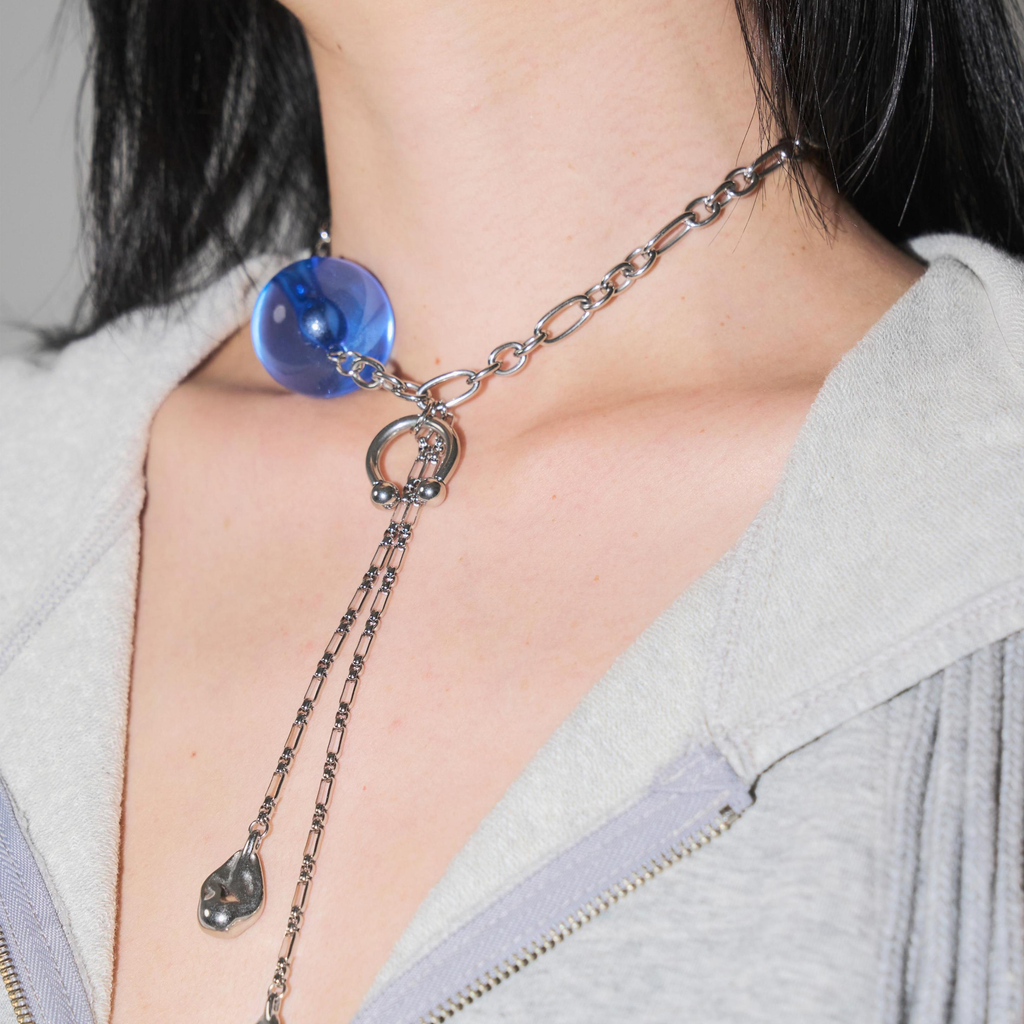 2-way statement necklace made of Stainless steel chains/ hardware with acrylic bead.