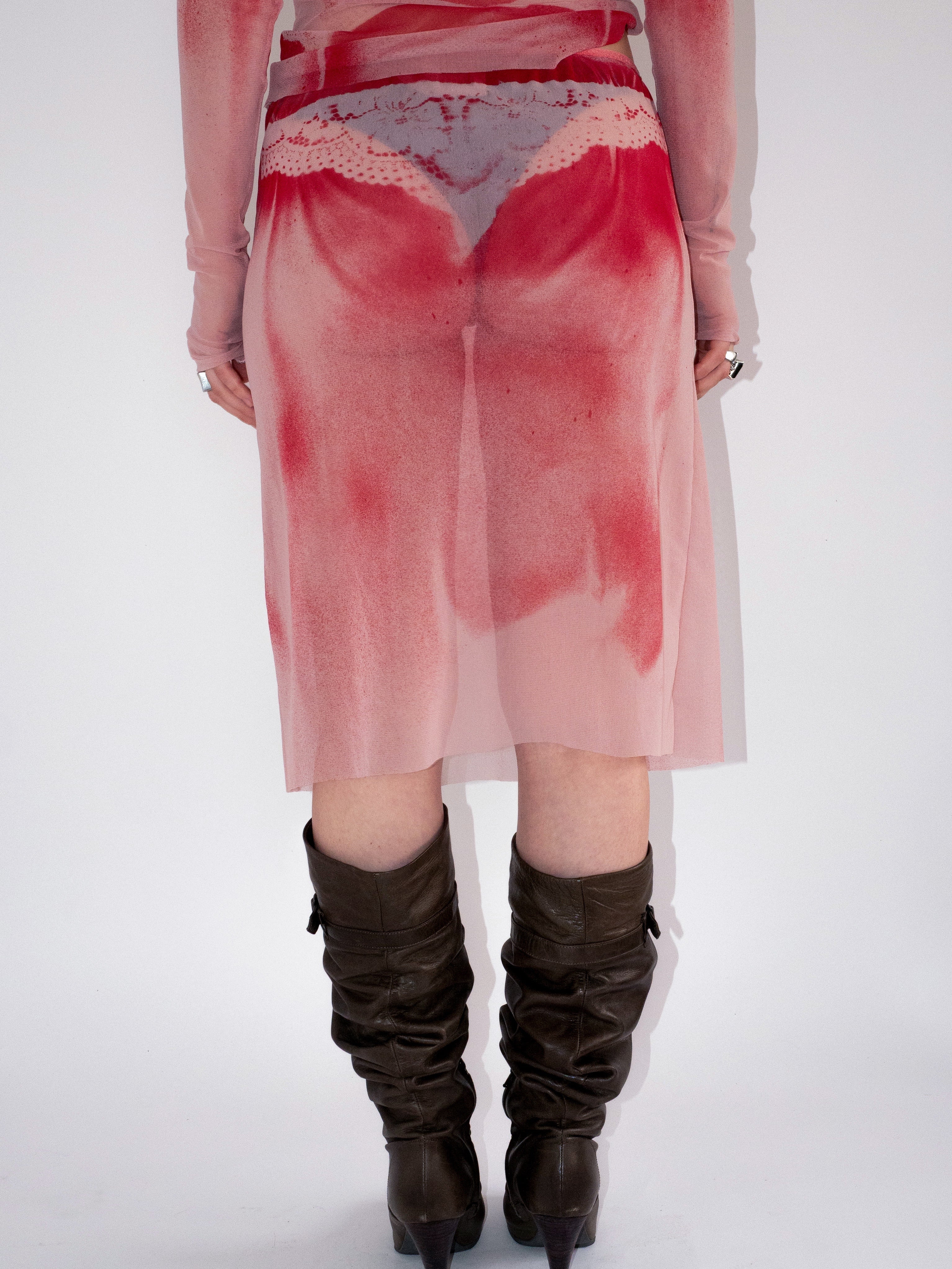 The skirt is sewn and spray painted with vintage lingerie in our paris atelier. This makes each print completely unique.