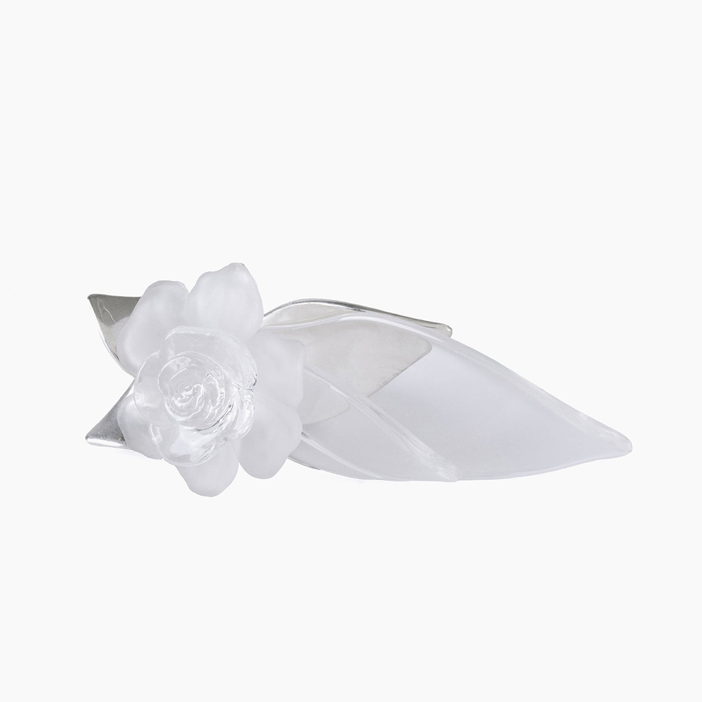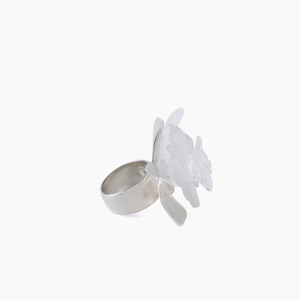 Deadstock vintage plastic flowers embedded in a brass piece plated in sterling silver 925.