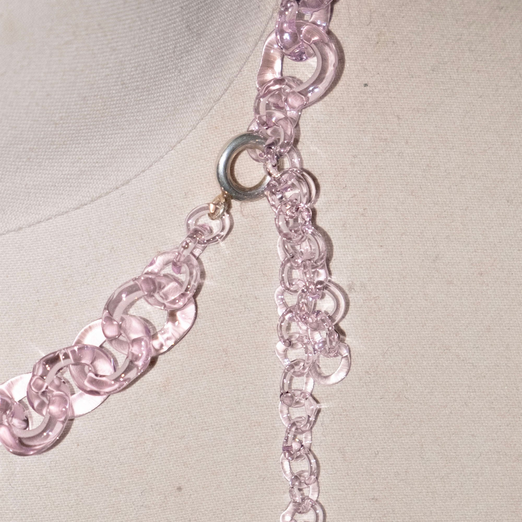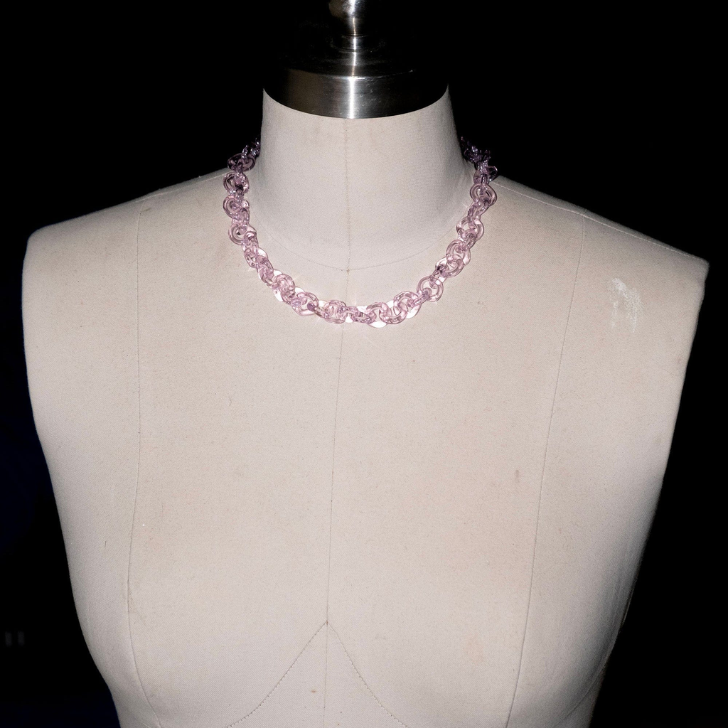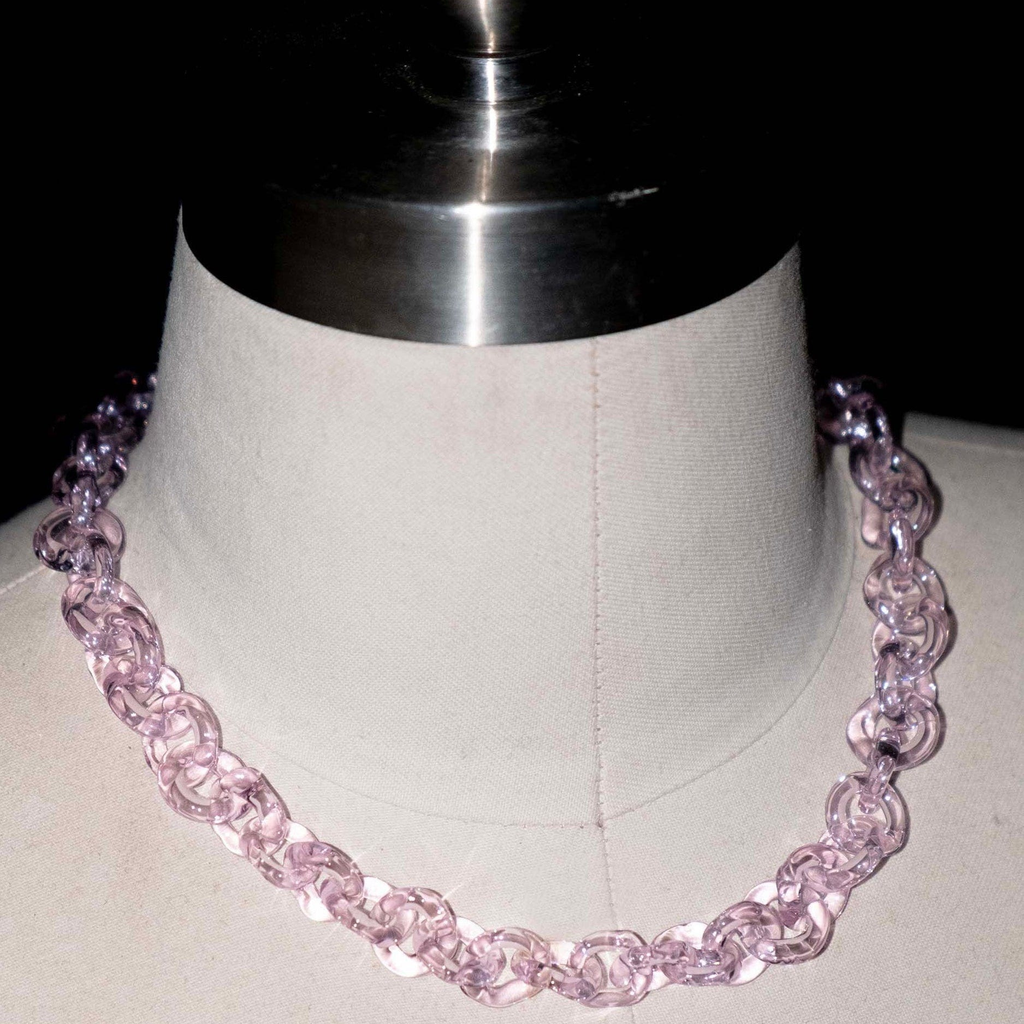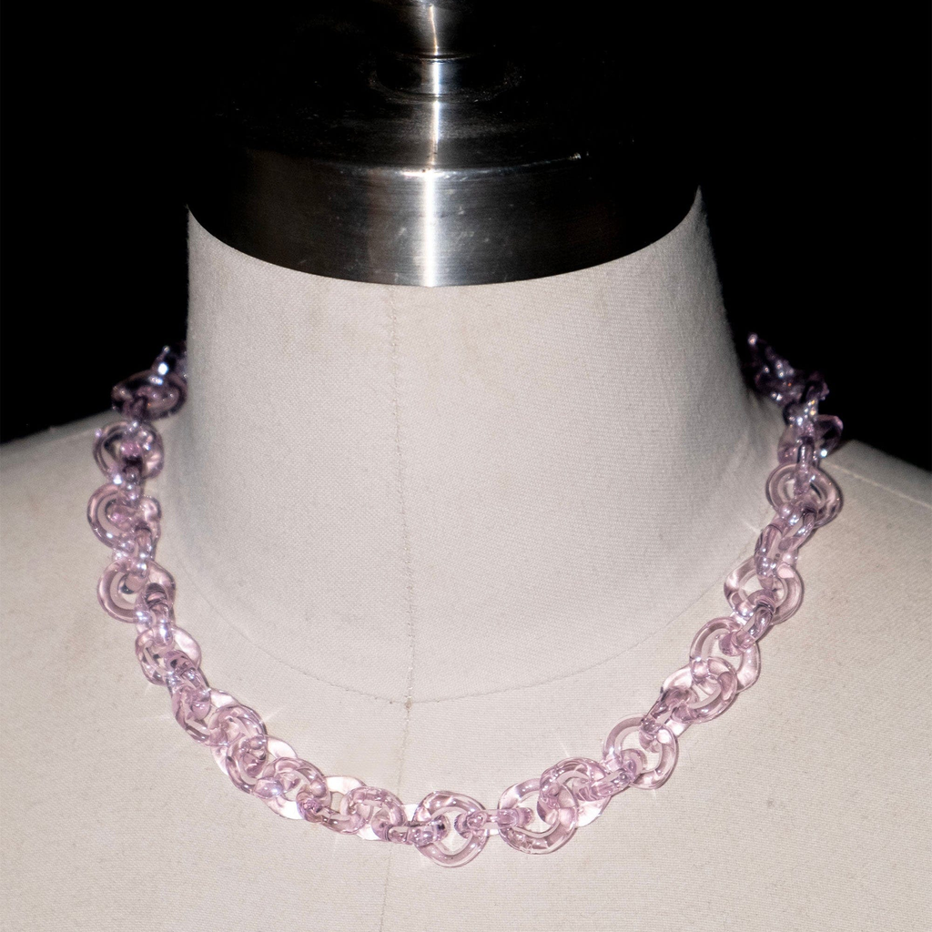 Bold glass chains, handmade from borosilicate glass. Each necklace is crafted with precision and care. The necklace is adjustable in size, allowing it to be worn as a choker or longer piece.