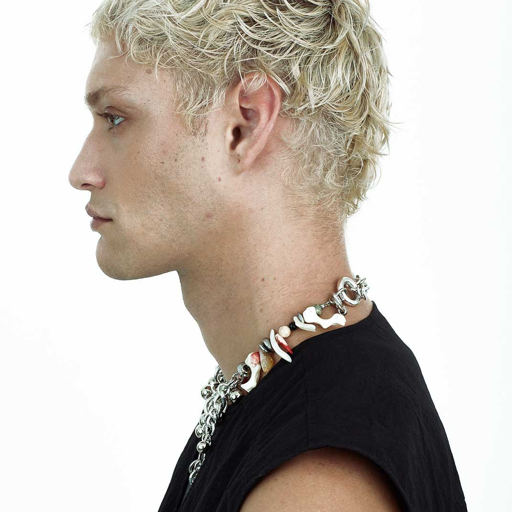 Jalaconda is a multidisciplinary artistic project, focused on the body. The LGBTQIA+ brand researches unconventional materials, such as latex, steel and natural Brazilian stones. They aim to discuss the place of manual work and personal adornment, knowing that clothes are fully political as they are from a country historically full of complexities.