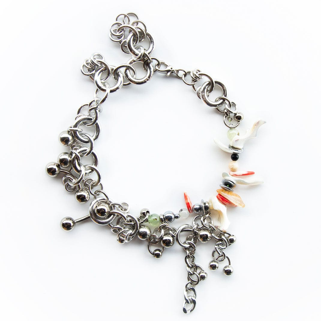 Material: Aluminum, nickel plated steel, glass, resin, mother of pearl and different types of natural stones such as hematite, obsidian, agate, coral and citrine.
