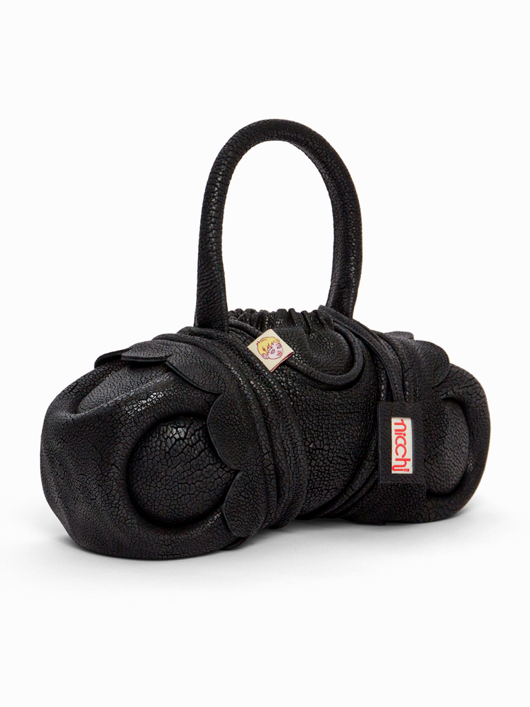 nicchi is a bittersweet universe of characters, places, stories and objects. A twilight zone between luxury and Saturday morning cartoons. nicchi bags are one of a kind – made by hand, one at a time. Designs are conceived through continuous play and hands-on engagement with materials. Before carefully crafting the final bag, a period of prototyping ensures that nicchi’s unorthodox constructions are viable.