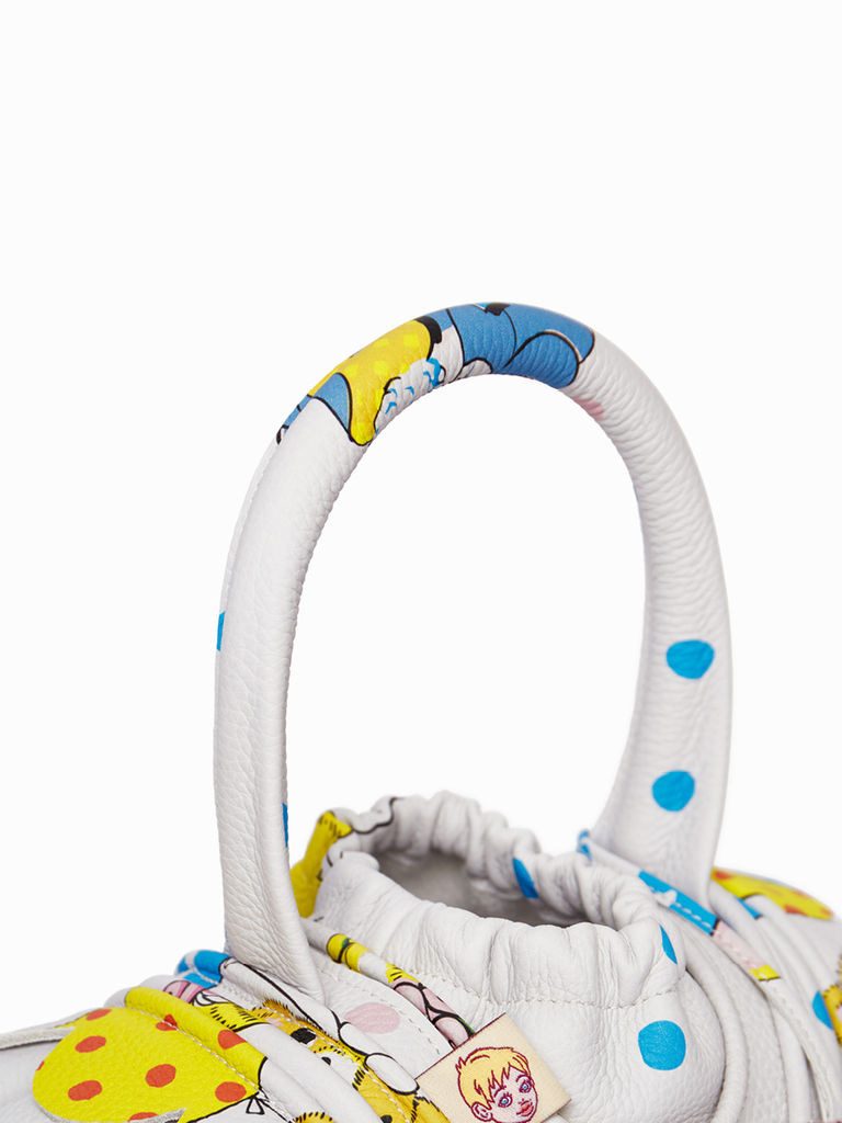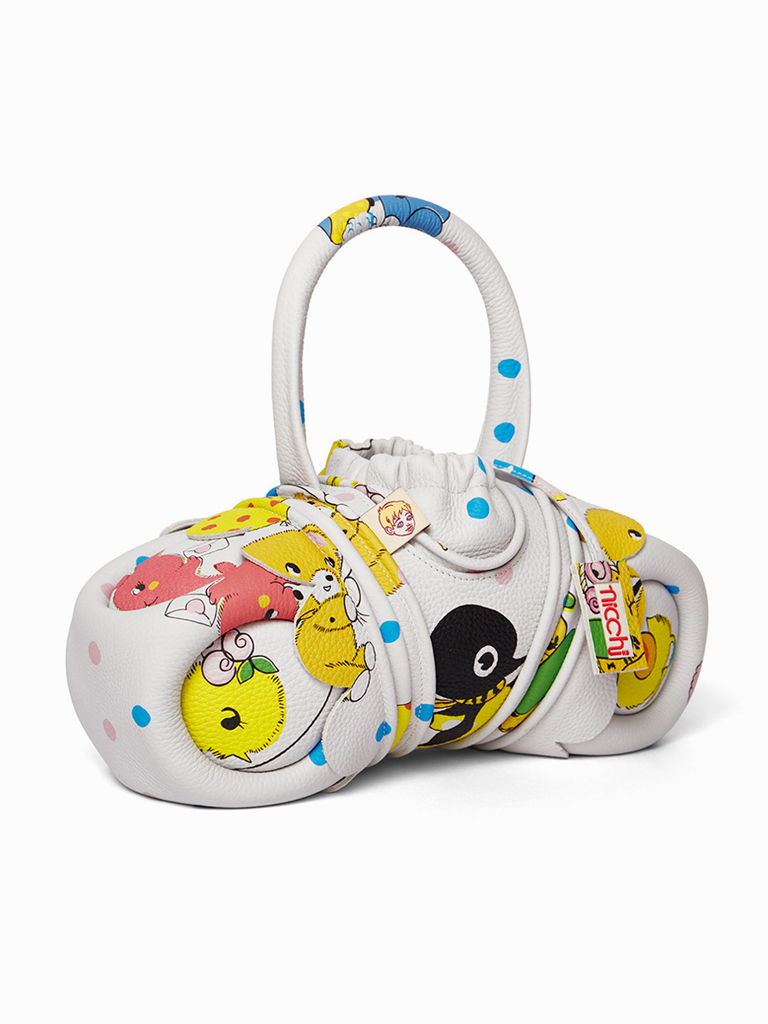nicchi is a bittersweet universe of characters, places, stories and objects. A twilight zone between luxury and Saturday morning cartoons. nicchi bags are one of a kind – made by hand, one at a time. Designs are conceived through continuous play and hands-on engagement with materials. Before carefully crafting the final bag, a period of prototyping ensures that nicchi’s unorthodox constructions are viable.