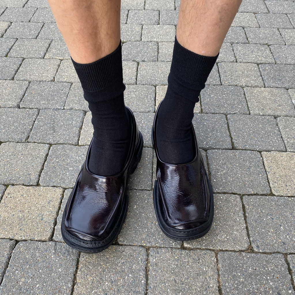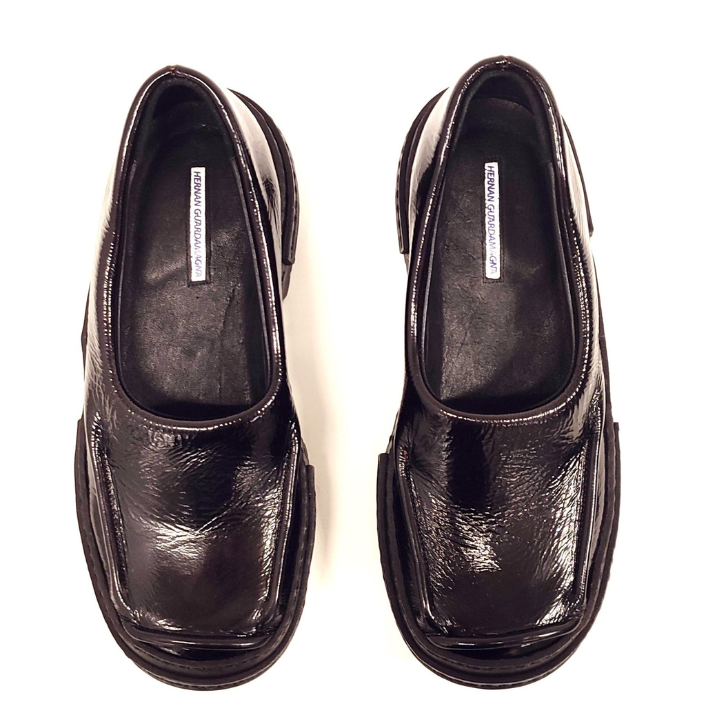 Hernan Guardamagna is a London-based footwear designer and maker. His eponymous brand focuses on modern shoes defined by bold silhouettes, geometric shapes and elements of sportswear and futurism. Recycling and upcycling are two strong pillars of Hernan Guardamagna’s work, thus many of the materials he uses are sourced from deadstock or discarded from the fashion industry.