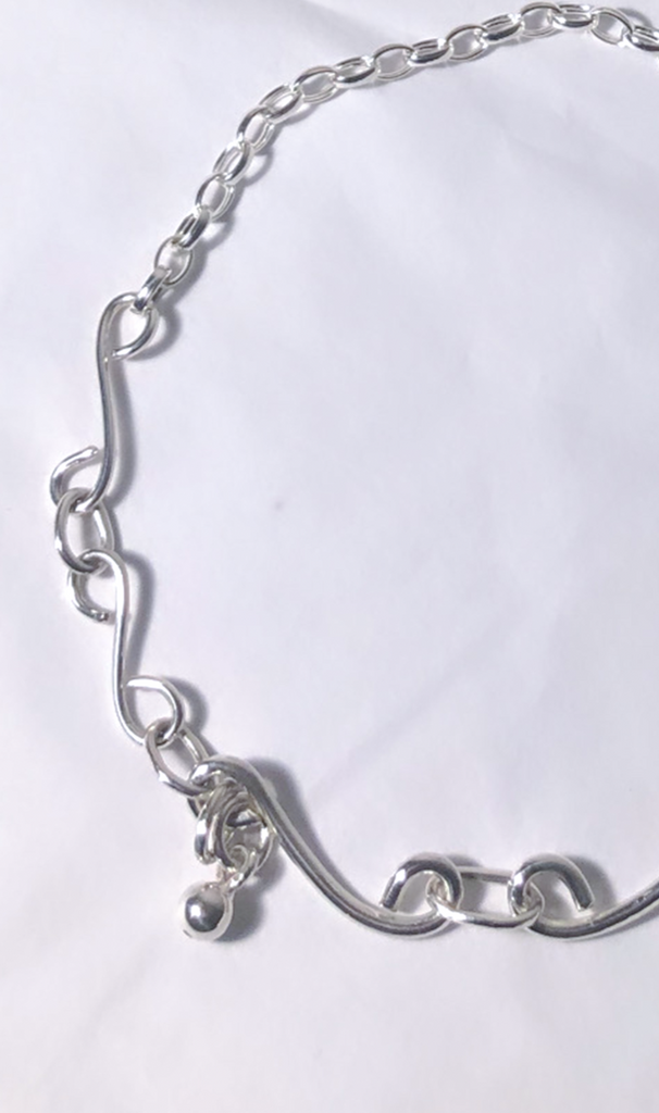 This necklace is made with 925 solid sterling silver and has a small silver bell attached to it.