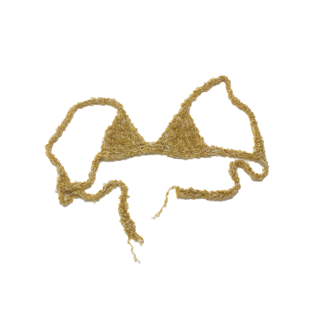 Hand knit bralette with an adjustable back tie.