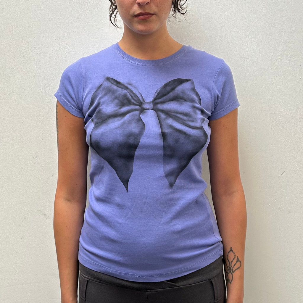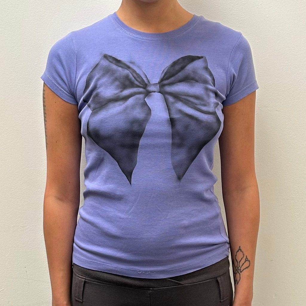 Airbrush upcycled fitted bow tee by Mia Violet.