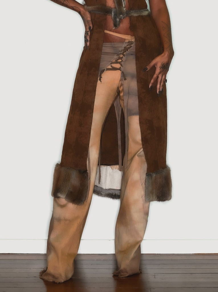 Jezebel (174cm), wears Baroque Vest (S), Gradient Wash Pants (S), Braided Skirt (M)