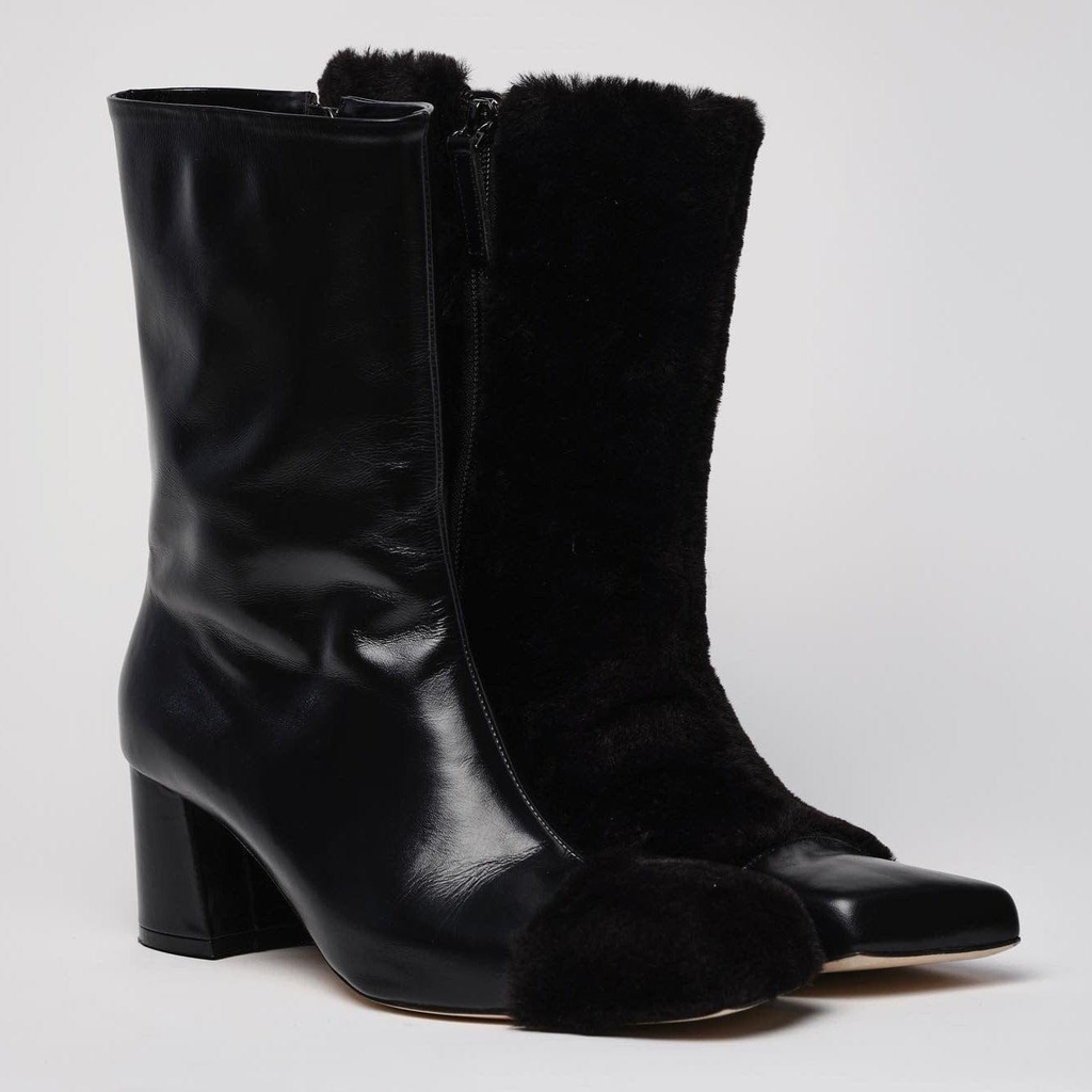asymmetry slashed fur ankle boots