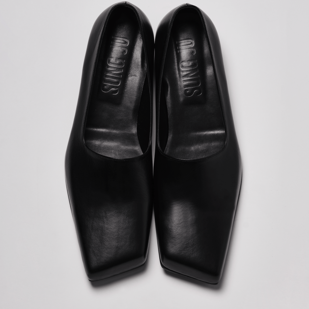 black slashed heels