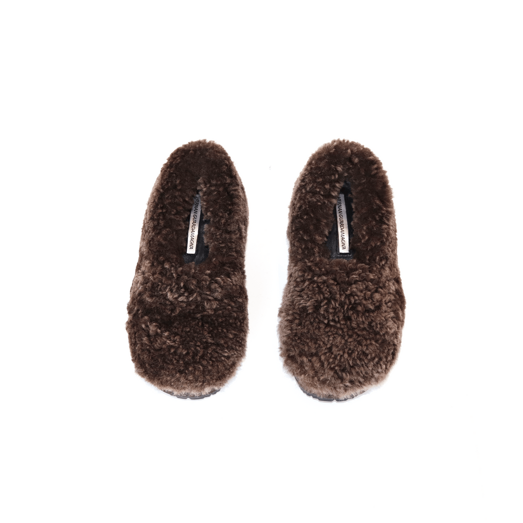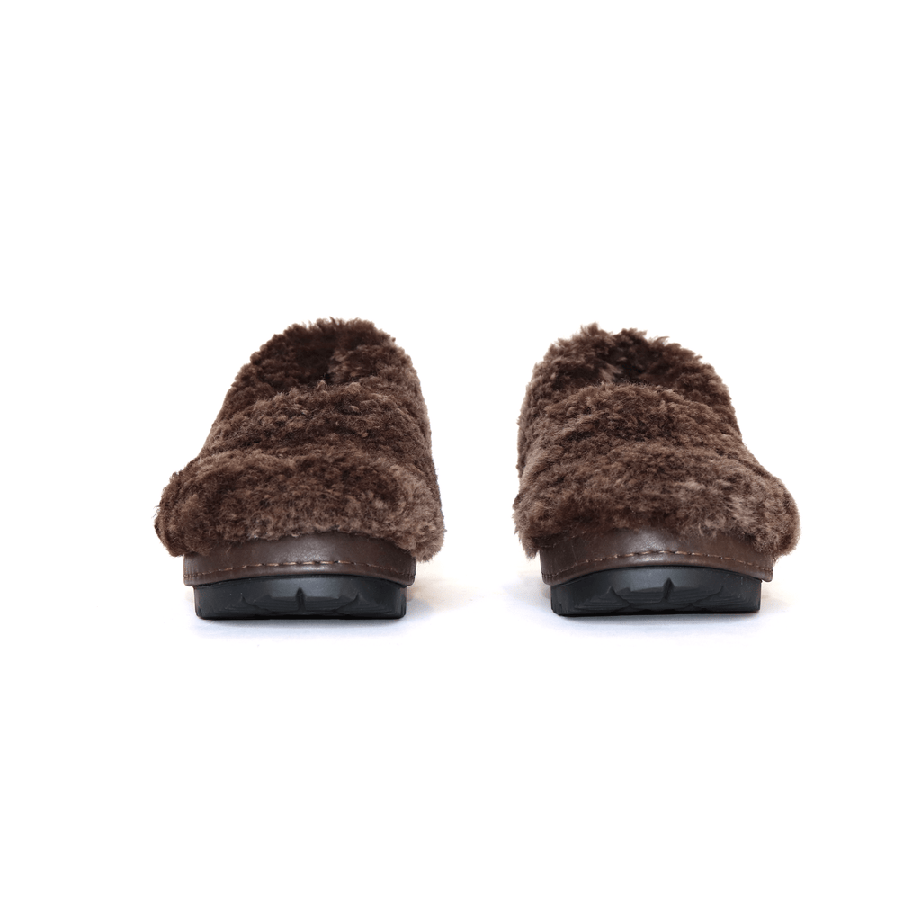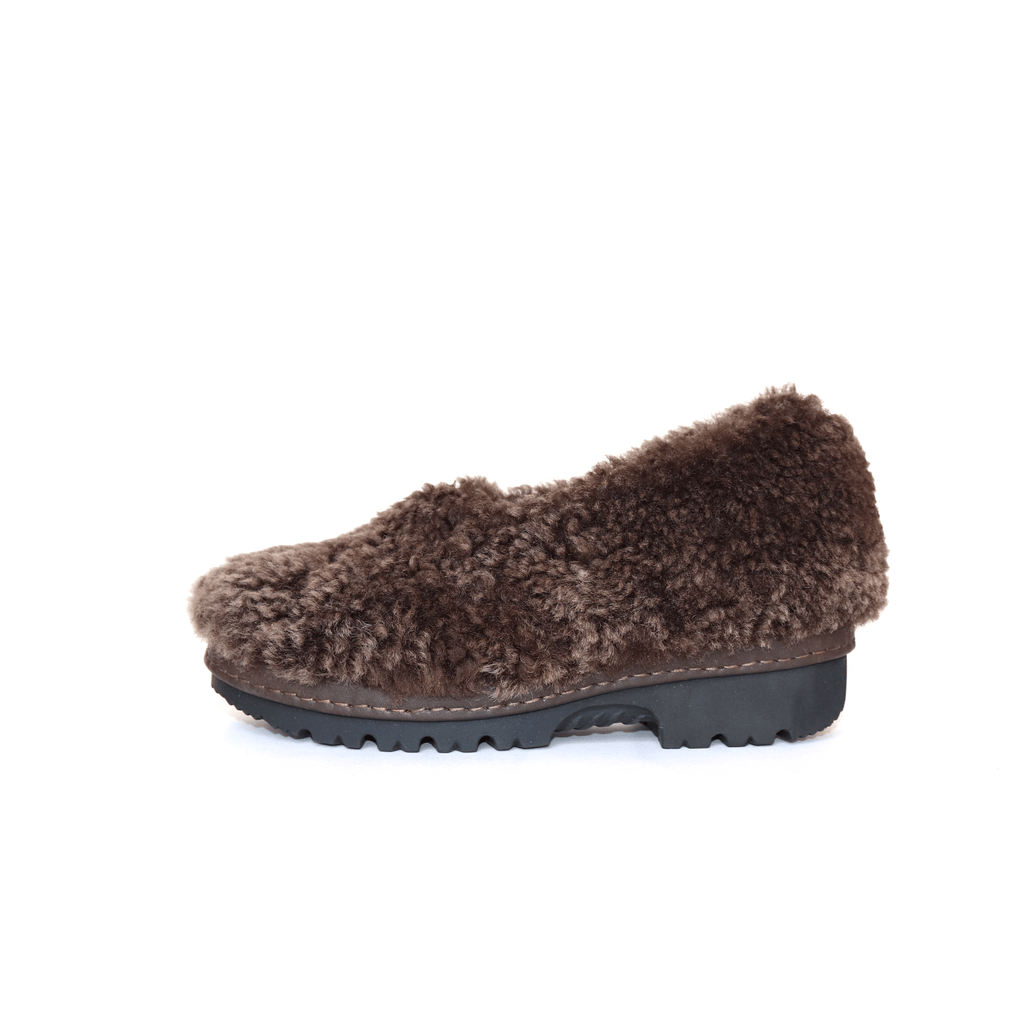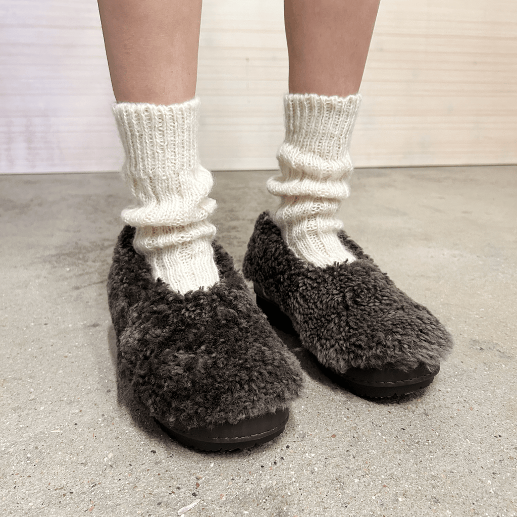 The upper of the shoes has been made with deadstock/discarded sheepskin. The industrial rubber sole unit features a leather band, also made from discarded leather. This band holds together the sole and the upper with two rounds of hand stitches. The lining, crafted from discarded leather, ensures durability. The total height of the shoes is around 5 cm. They are finished with a branded leather insole, providing added comfort and style.While we aim to produce orders using the same sheepskin as shown in the pictures, minor variations in color and hair length may occur due to the nature and source of the material. As we use deadstock, there may be slight differences between them.