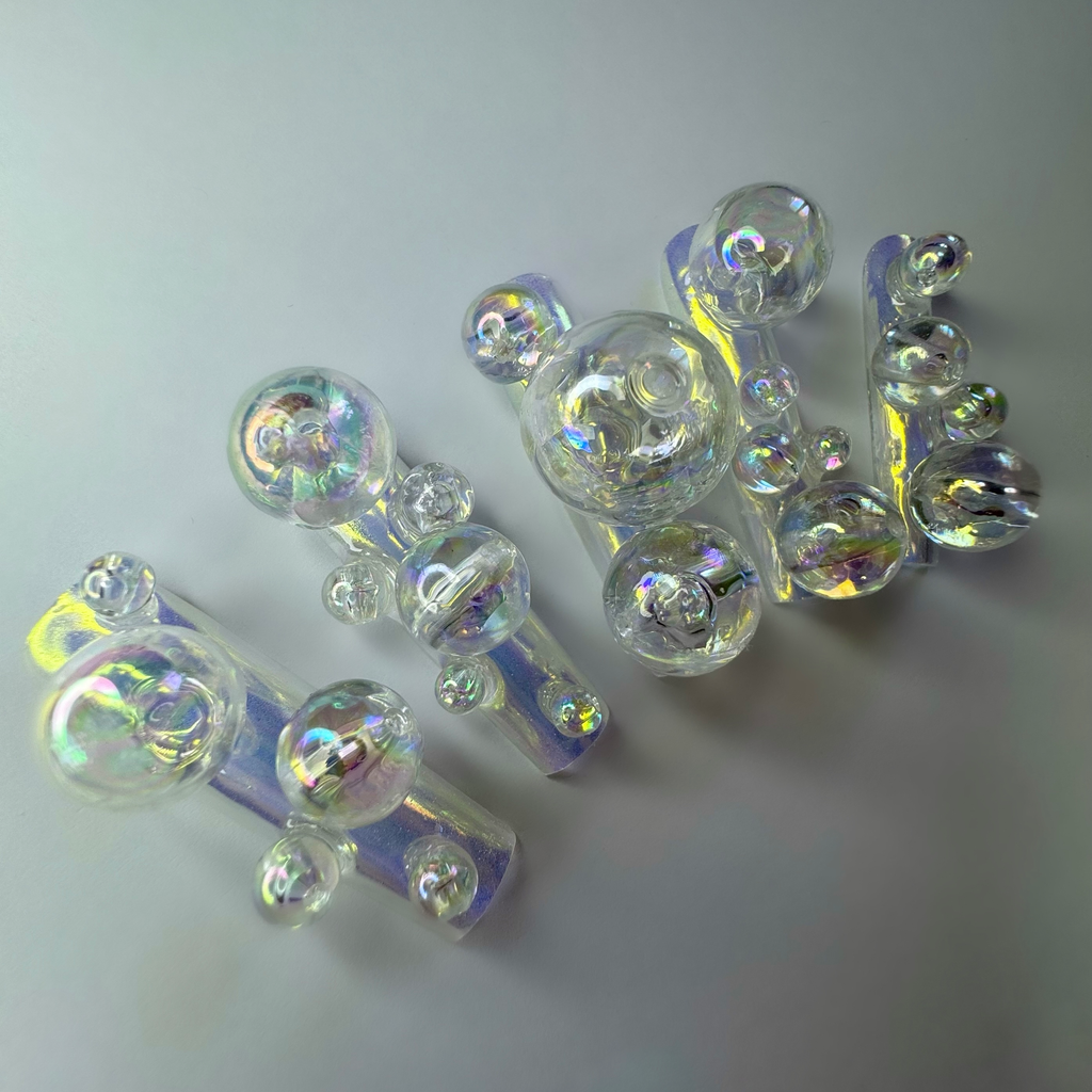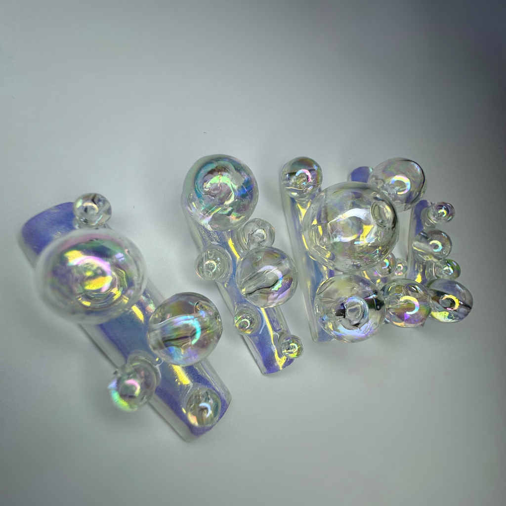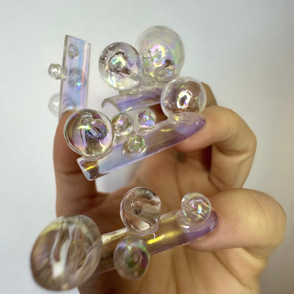 "Giant bubble" is a 10-piece of press-on nails forming large bubbles. Made by hand in France.