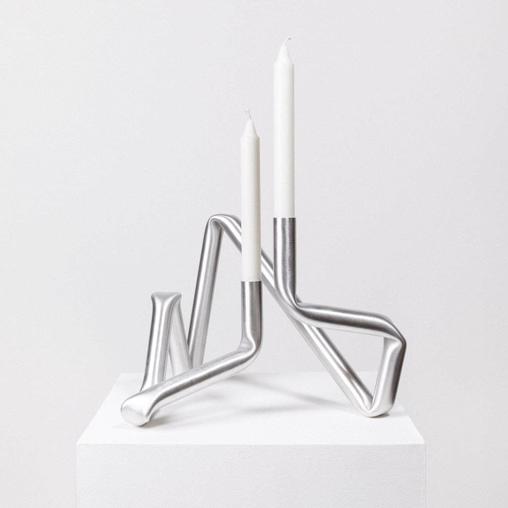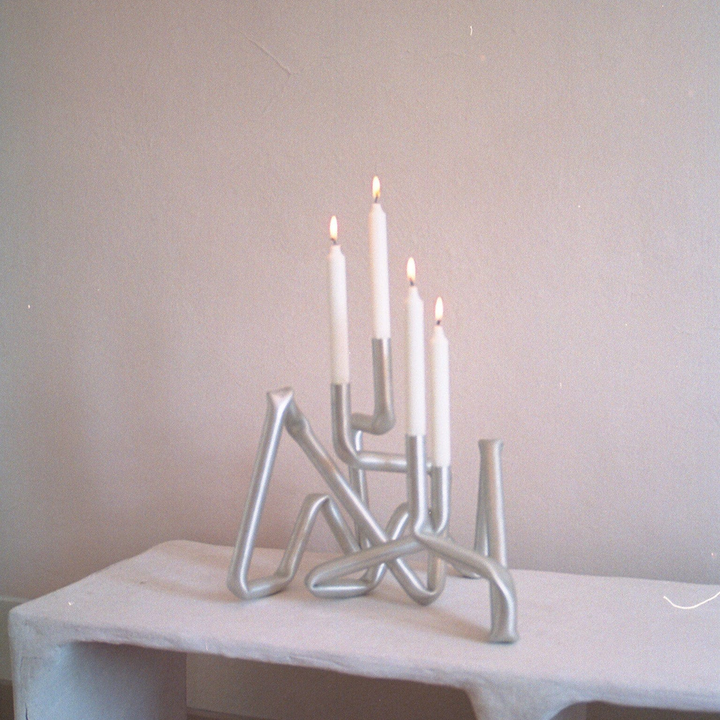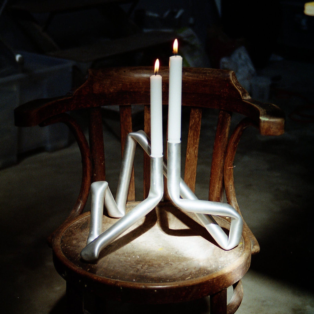 The Bucatini candle holder the small version of our candle holder and is made of 1,5 metres of aluminium tube. It is always hand-made, always made in Denmark and always wanting to be seen. Because it is hand-made, there will be small variations in the shape of each individual item.