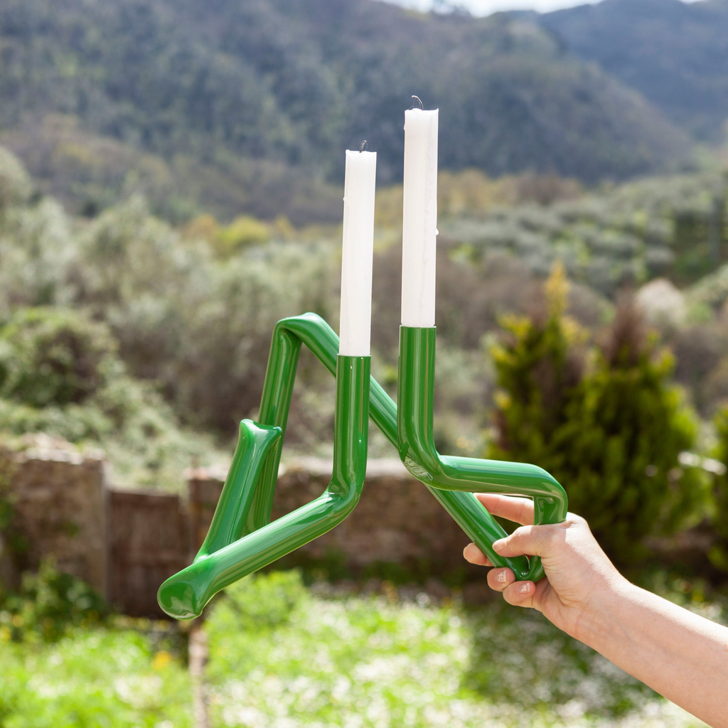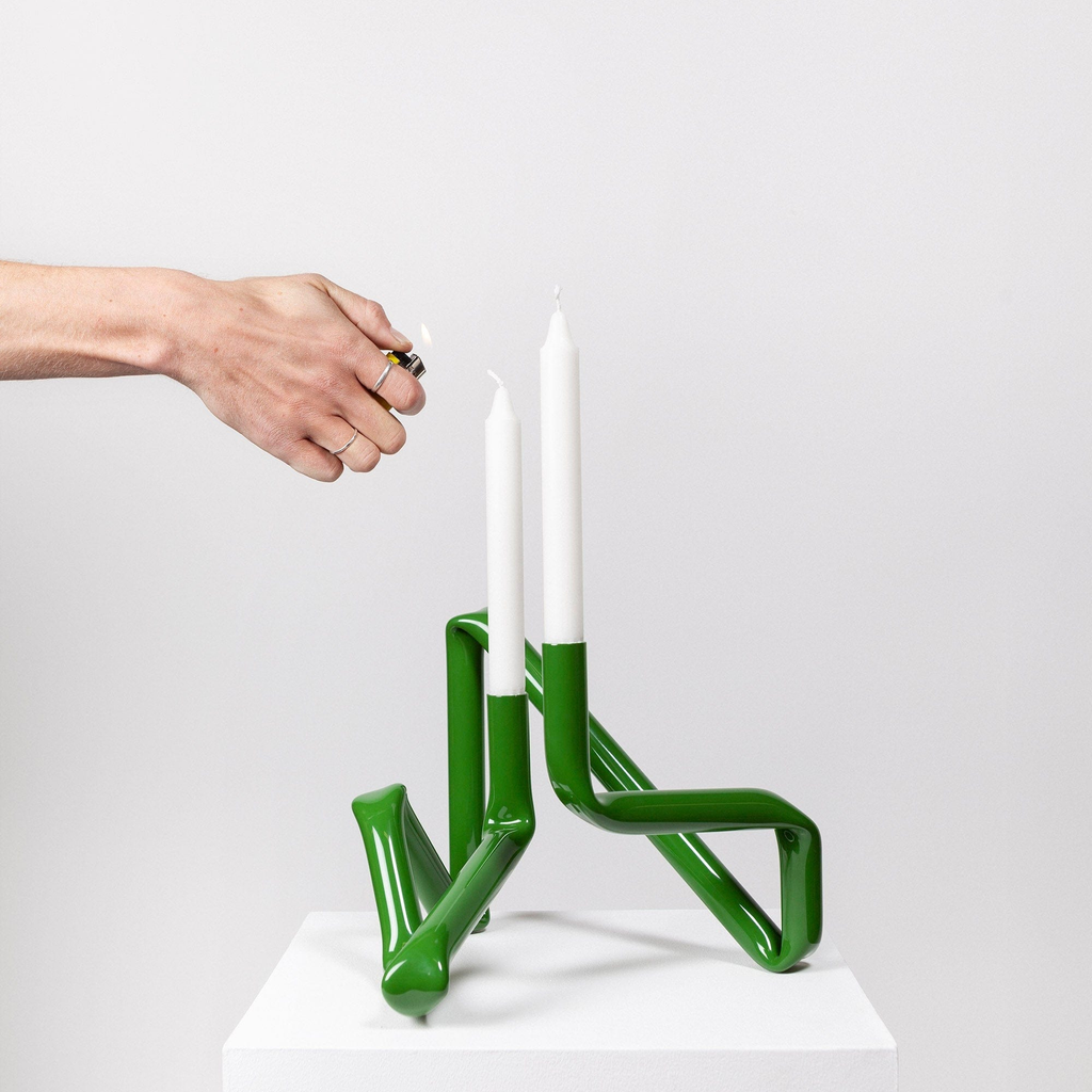 The Bucatini candle holder the small version of our candle holder and is made of 1,5 metres of aluminium tube. It is always hand-made, always made in Denmark and always wanting to be seen. Because it is hand-made, there will be small variations in the shape of each individual item.