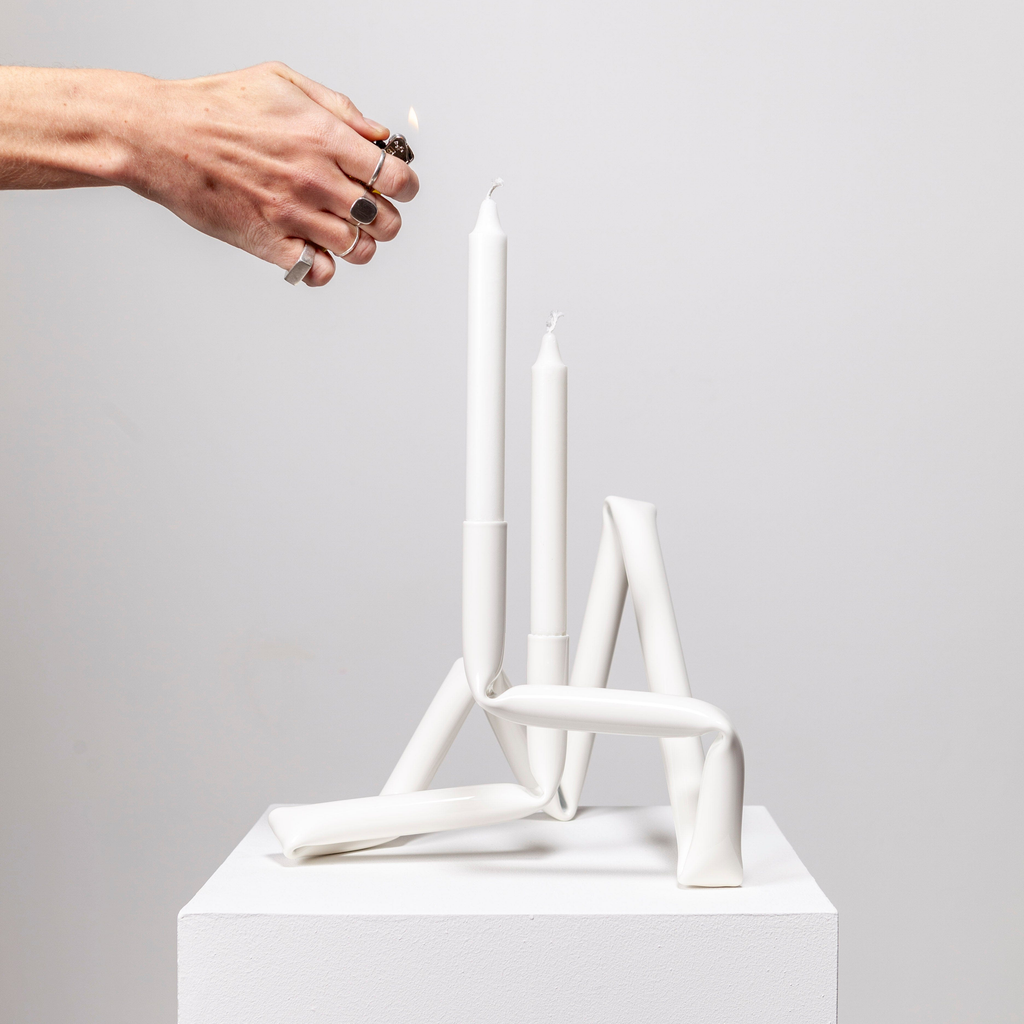 The Bucatini candle holder the small version of our candle holder and is made of 1,5 metres of aluminium tube. It is always hand-made, always made in Denmark and always wanting to be seen. Because it is hand-made, there will be small variations in the shape of each individual item.