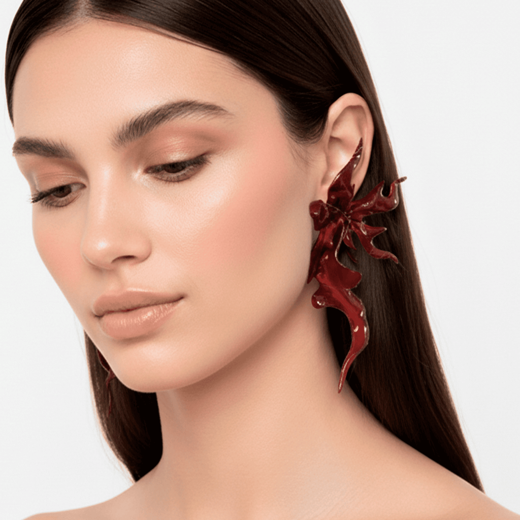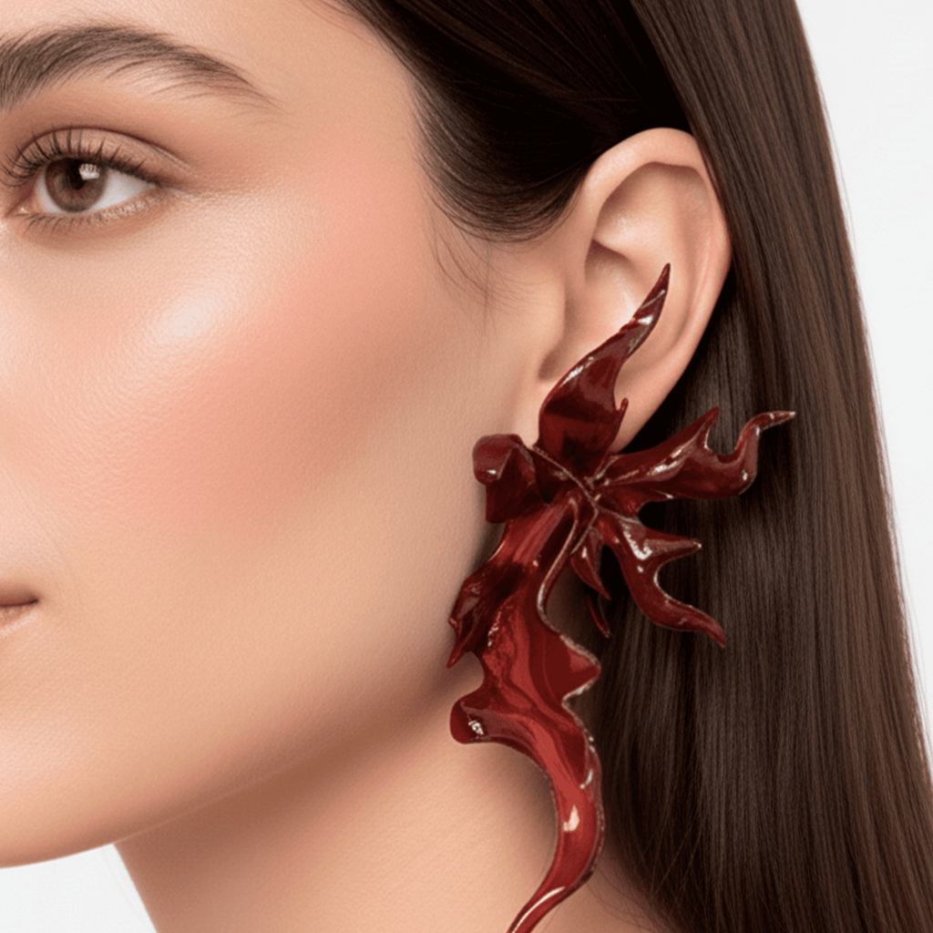 The Burgundy Sculptural Flower Earrings embody the essence of a flower delicately encapsulated in an artistic design. Their rich burgundy hue adds a striking touch, while the sculptural shape creates a captivating silhouette that enhances any outfit. For pierced ears.