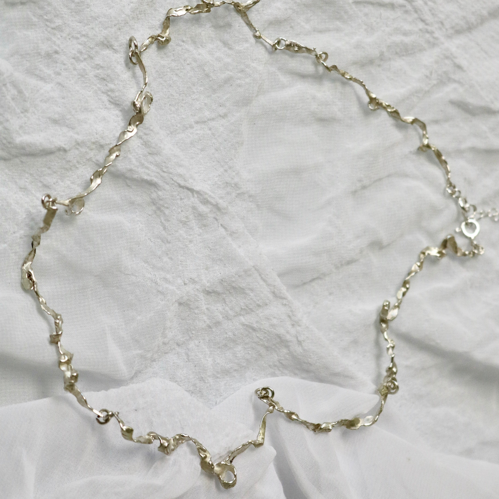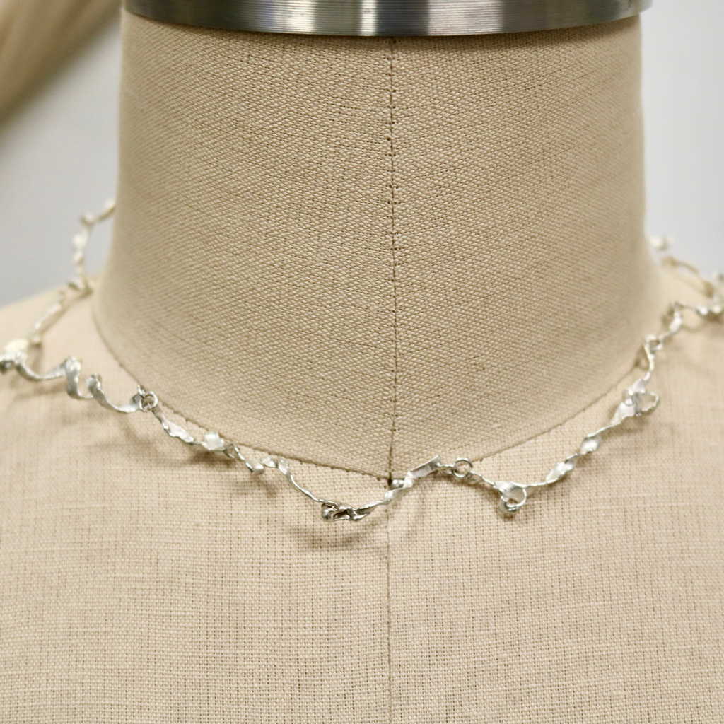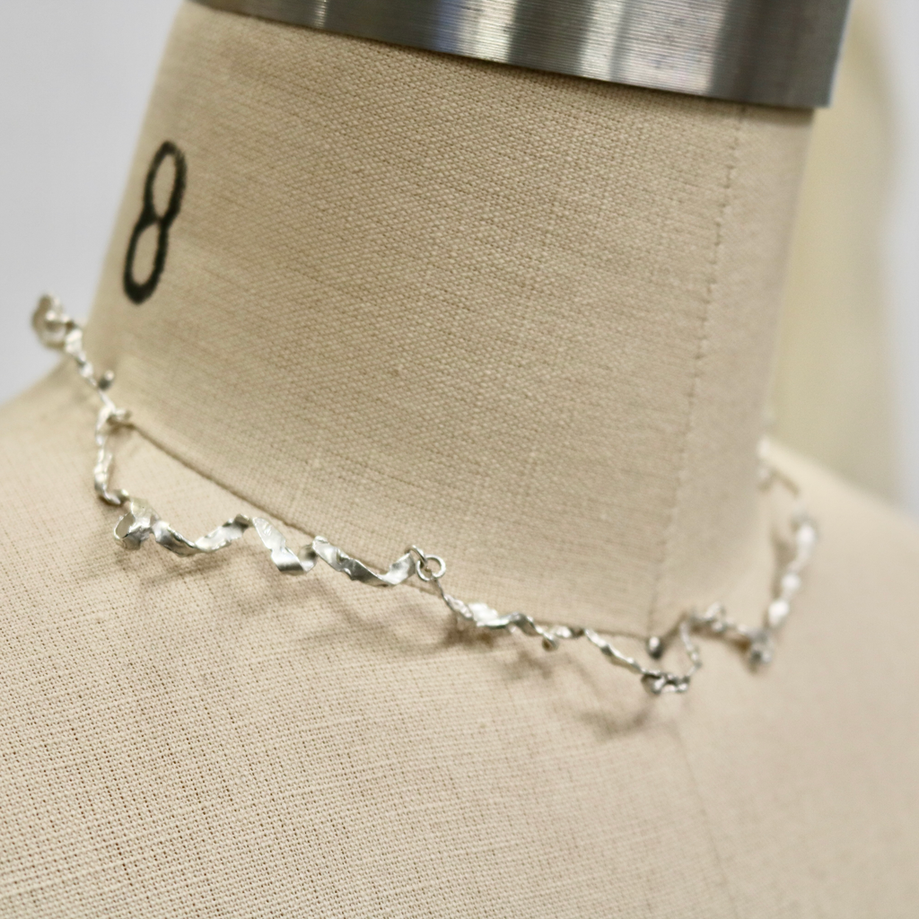 Handmade sterling silver choker with “burnt” ribbon chain links.