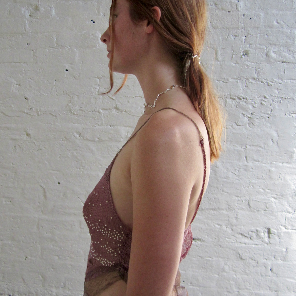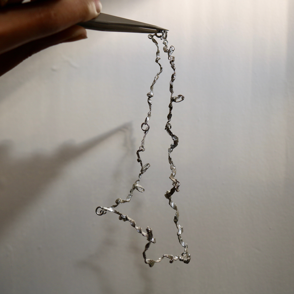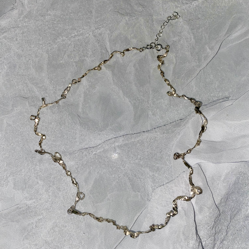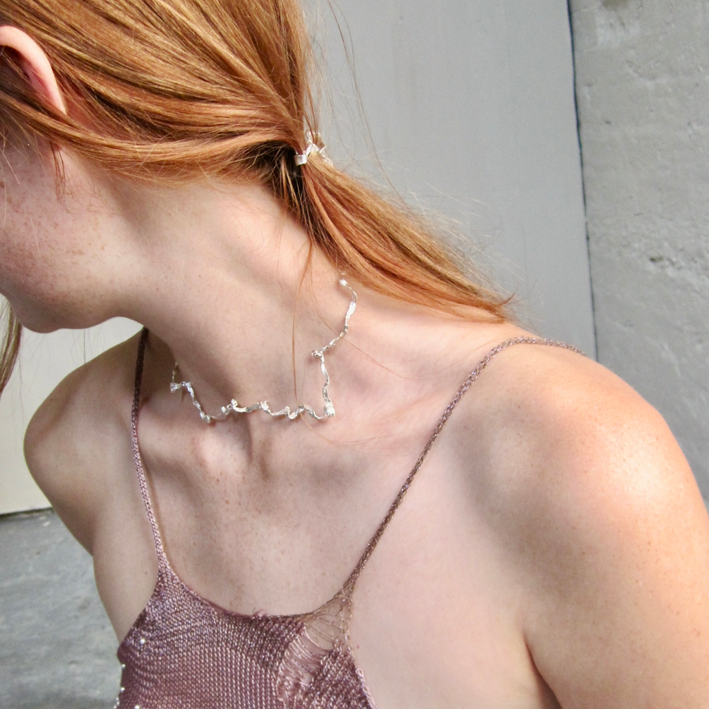 Handmade sterling silver choker with “burnt” ribbon chain links.