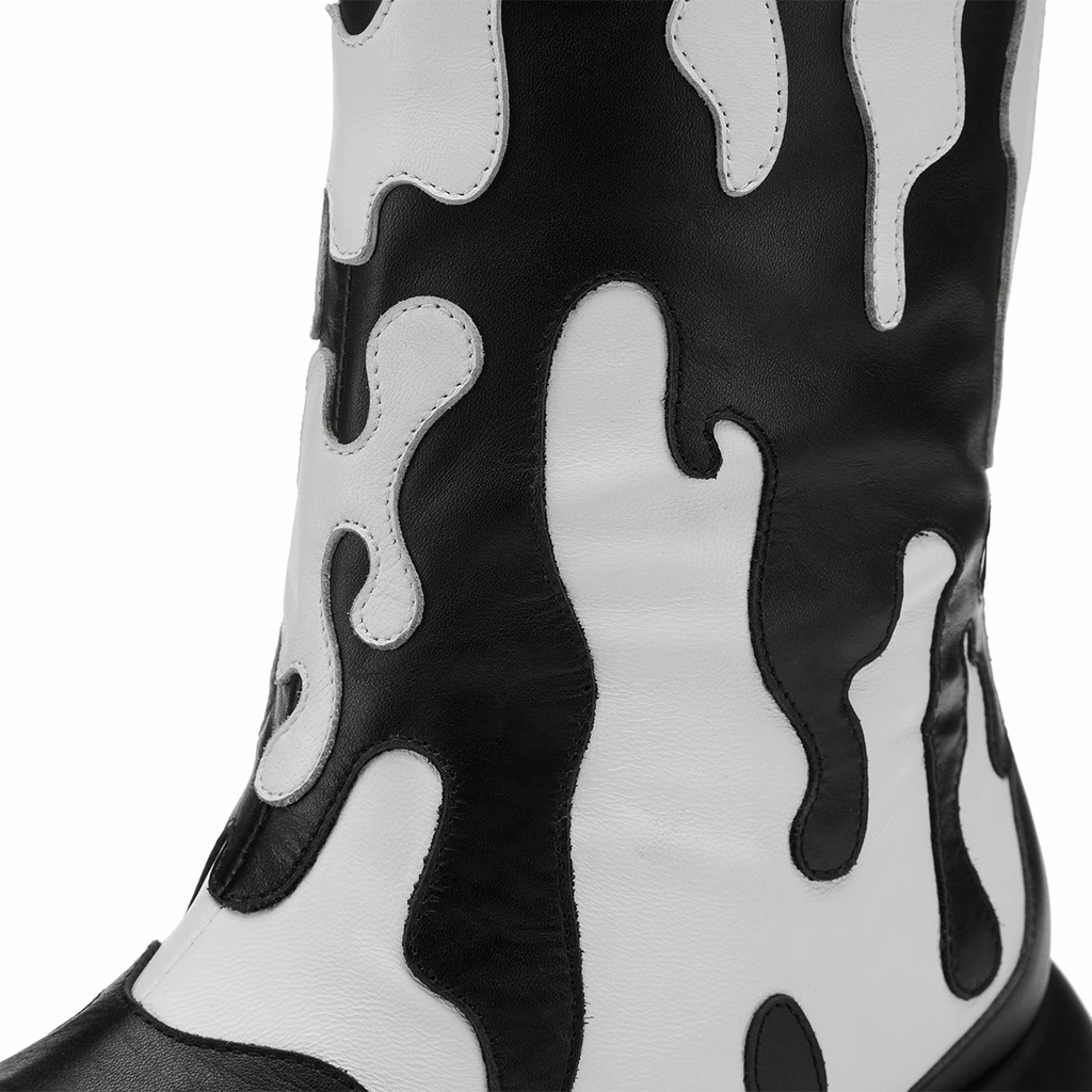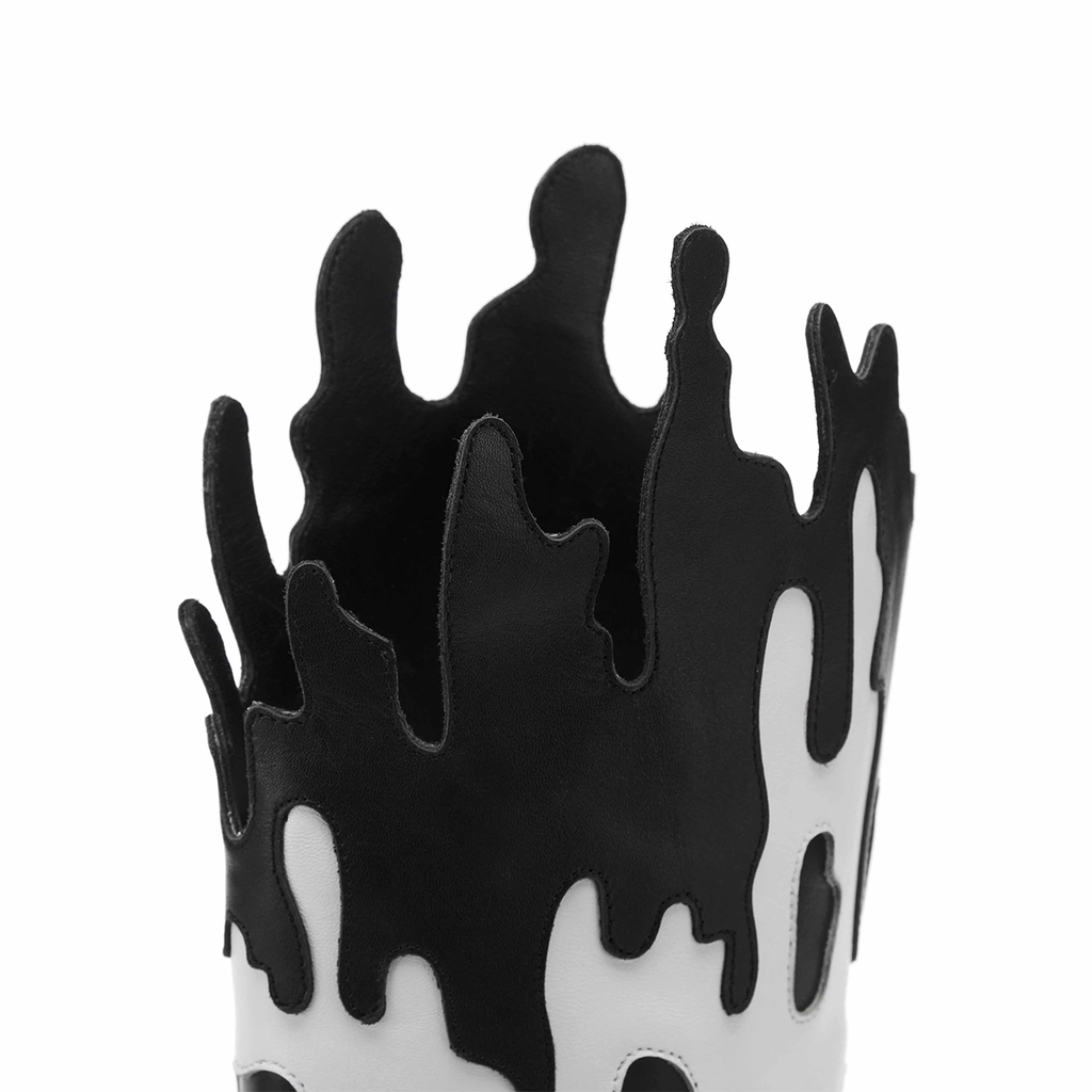 Leather patches are intricately cut and stitched on for a gory dripping effect