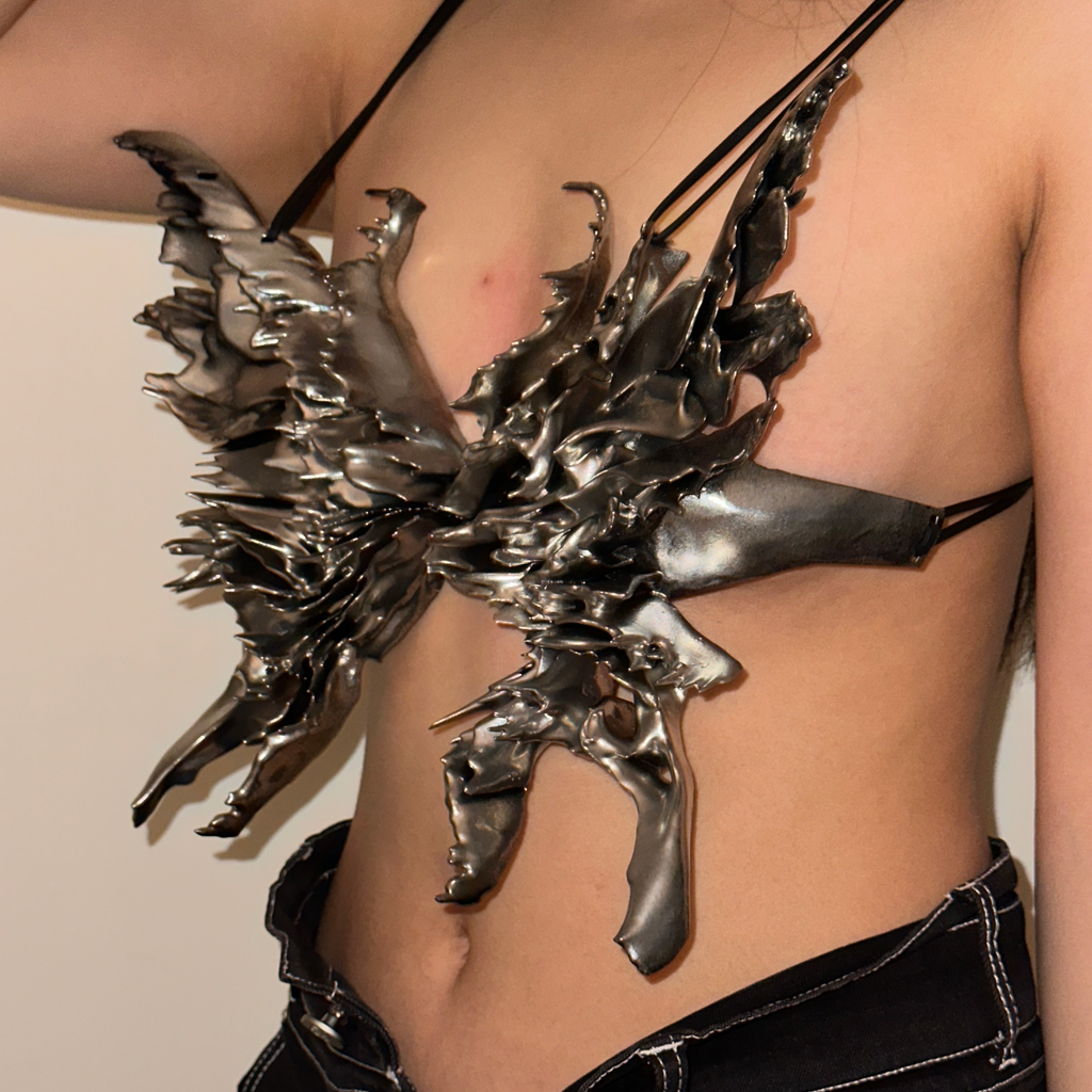 GNASTIY is the brainchild of visionary Chinese designers Vicki Tsang and Di Yi. Together, they fuse technology and tradition, exploring the nexus of innovation and timeless artistry. GNASTIY captures attention with a fresh perspective on futuristic designs, drawing inspiration from early Mugler, The Fifth Element, and Alexander McQueen's fantastical shapes—all powered by 3D technology. At our core, they aspire to be a cloud-based database for societal memories, translating social issues into tangible, thought-provoking creations.