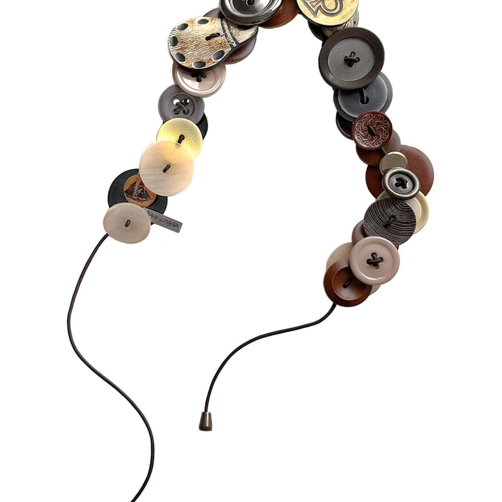 Materials: upcycled vintage buttons, rubber