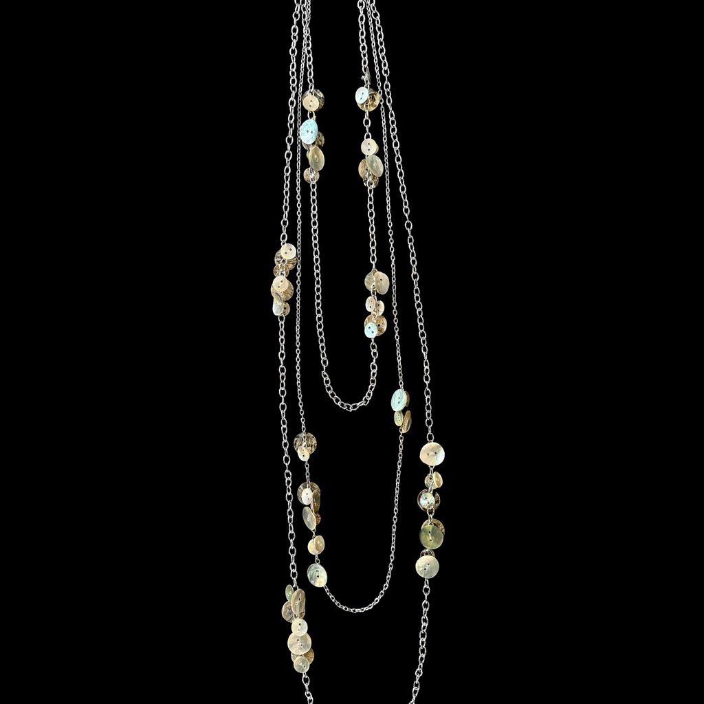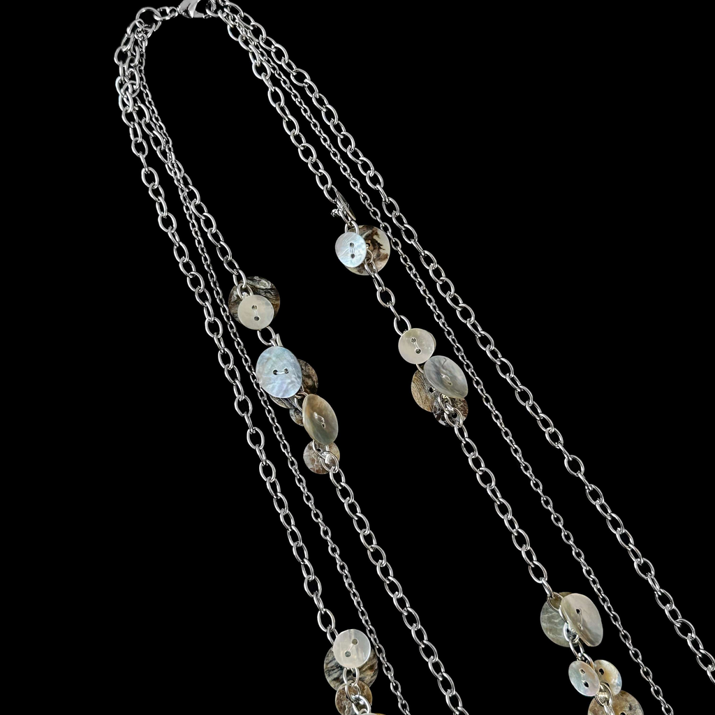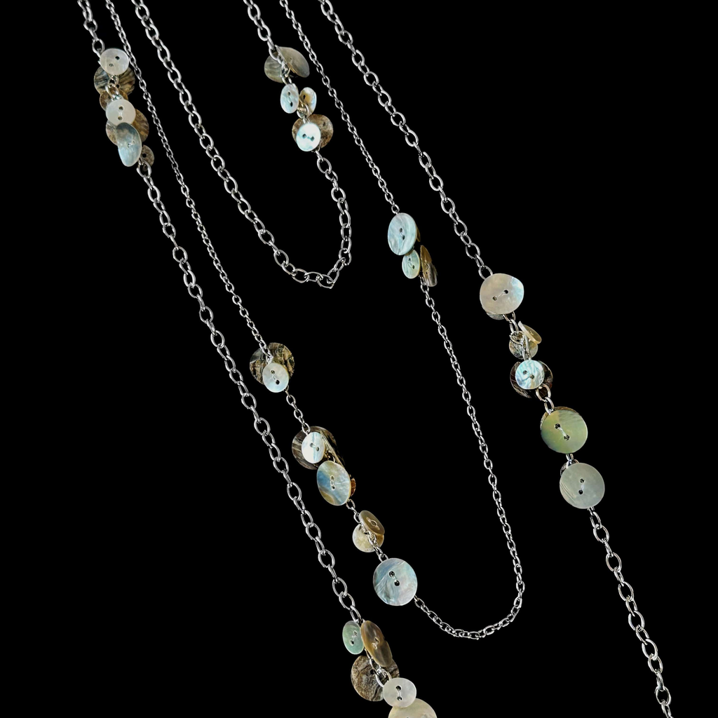 This limited edition "Button long chain" is a made-to-order piece, handcrafted with upcycled pearl buttons, giving new life to vintage materials.