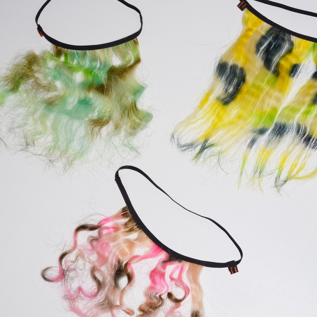 Materials: all hand-made, 100% Human hair, hand-dyed / elastic