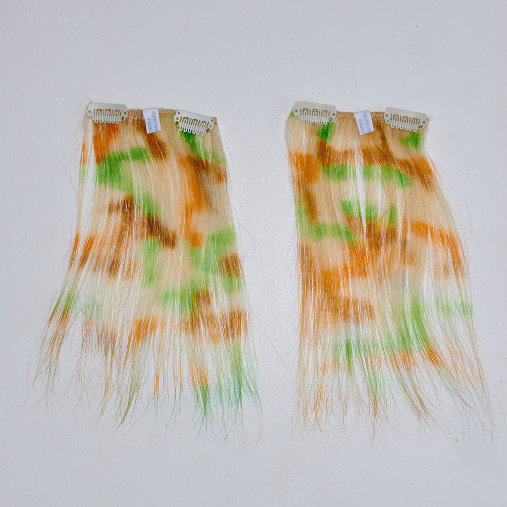 Materials: all hand-made, 100% Human hair, hand-dyed / clip-on