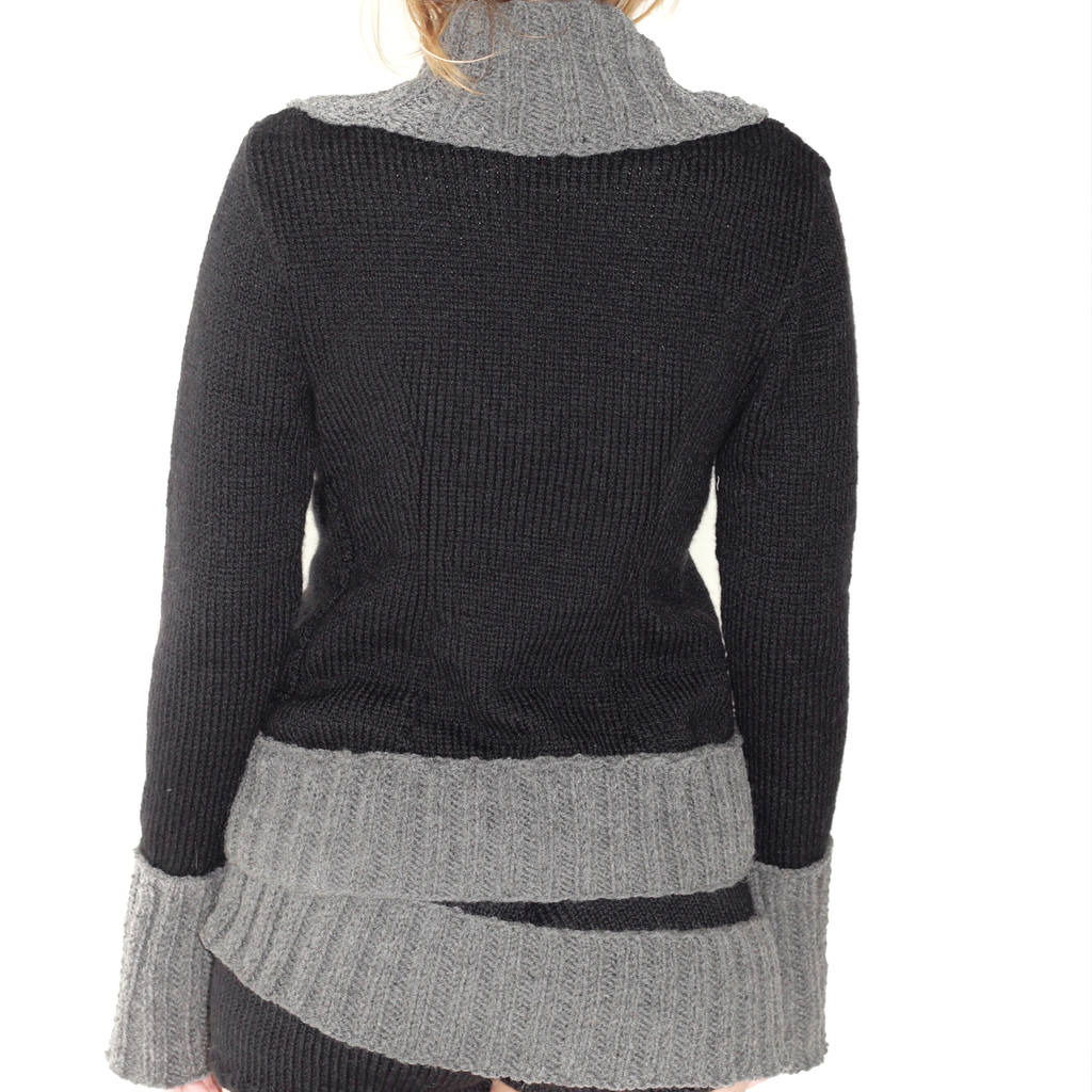 50% Wool 50% Acrylic yarn. Please Note: Handle the snap fasteners with care. When new, they can be quite tight.Regular fit