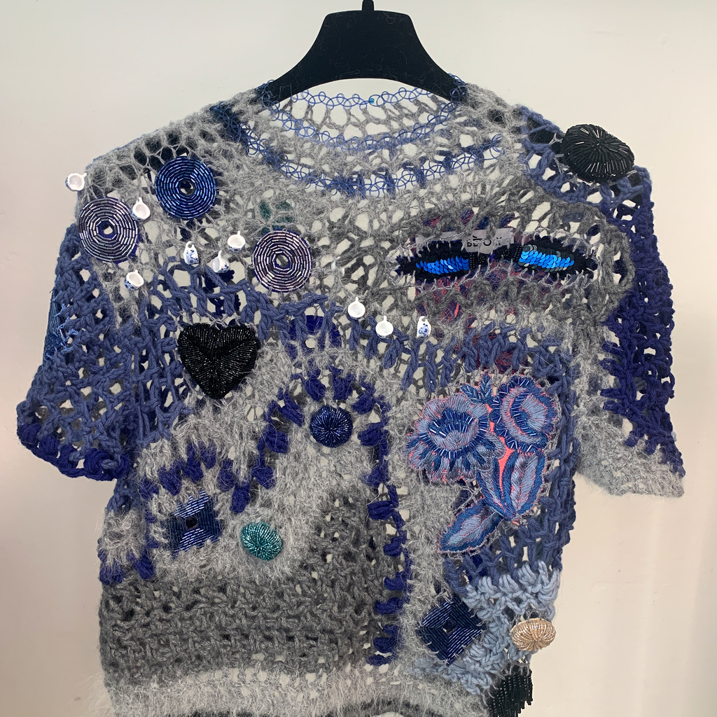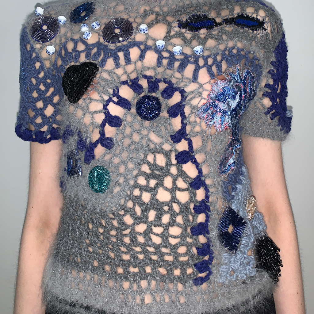 Lou de Bètoly is a French designer who works and lives in Berlin. Her main inspiration derives from chaos, surrealism, nostalgia, decadence, extravagance and oneirism. Adorned with embellishments, her intricately sensual crochet pieces reiterate her ‘wild at heart’ state of mind.