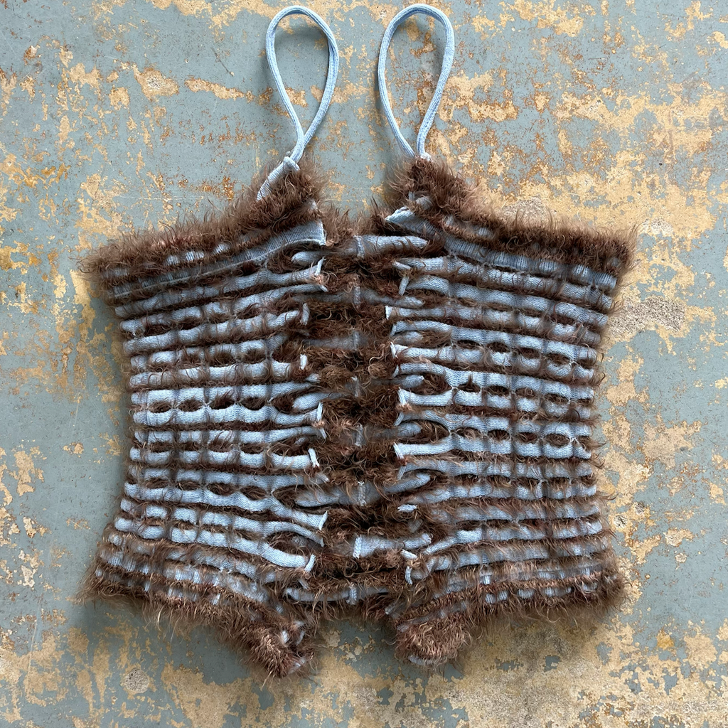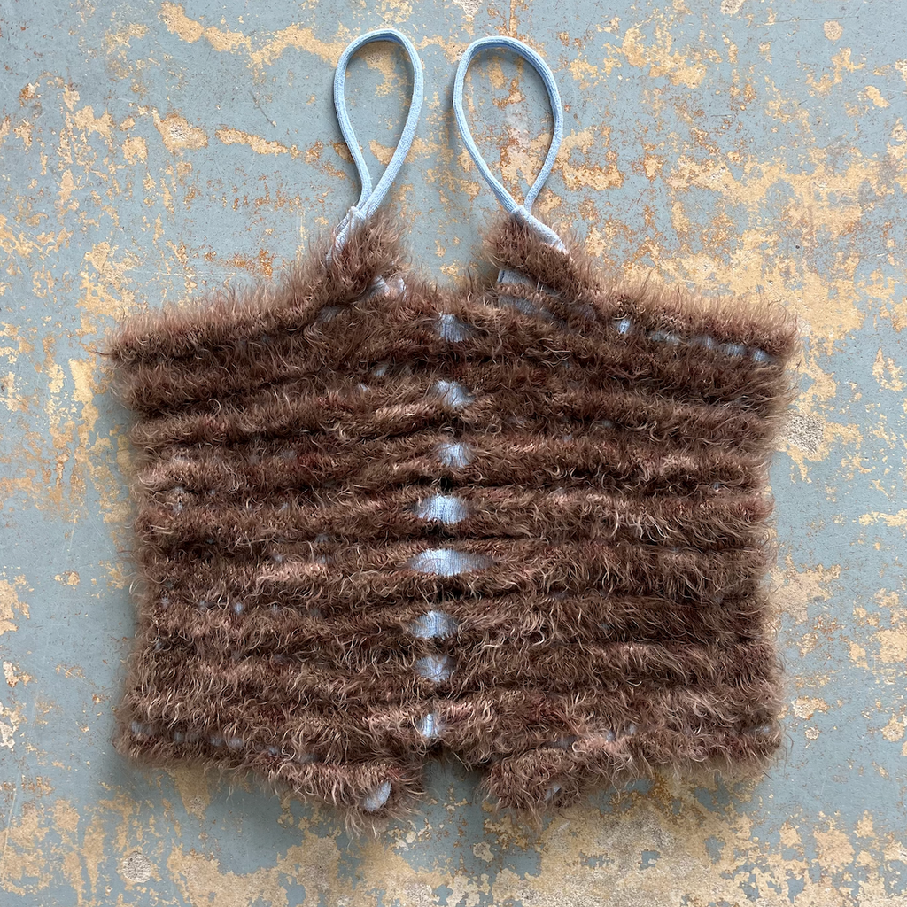 Material/fiber: Knitted elastane, mohair, and organic wool