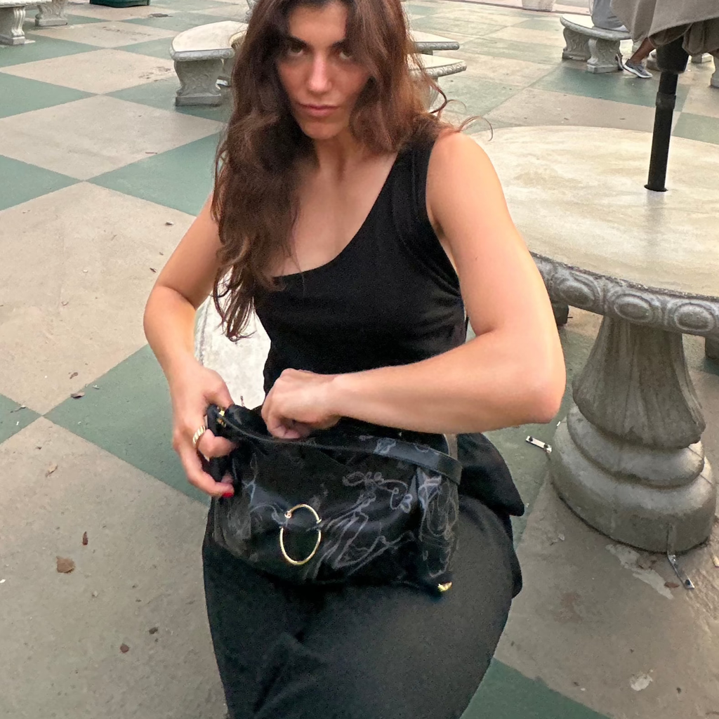 Charcoal charm bag by Gabrielle Rosenstein made from vegan leather.
