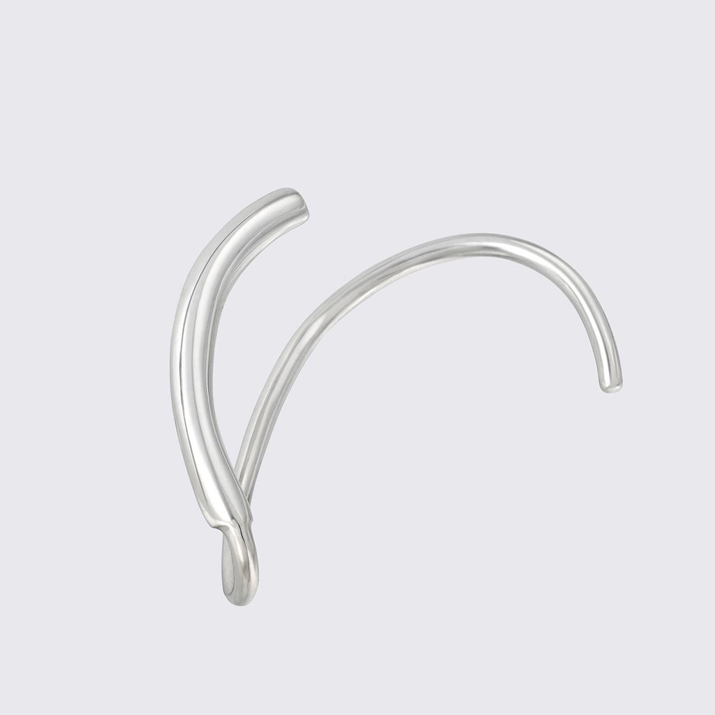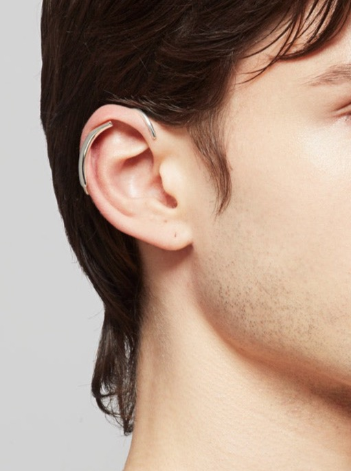 Charlie ear cuff flows around the helix. The line sensually highlights – finding its form with the body. It secures over the top of the ear, the wire seamlessly changing thickness to allow for a comfortable fit.