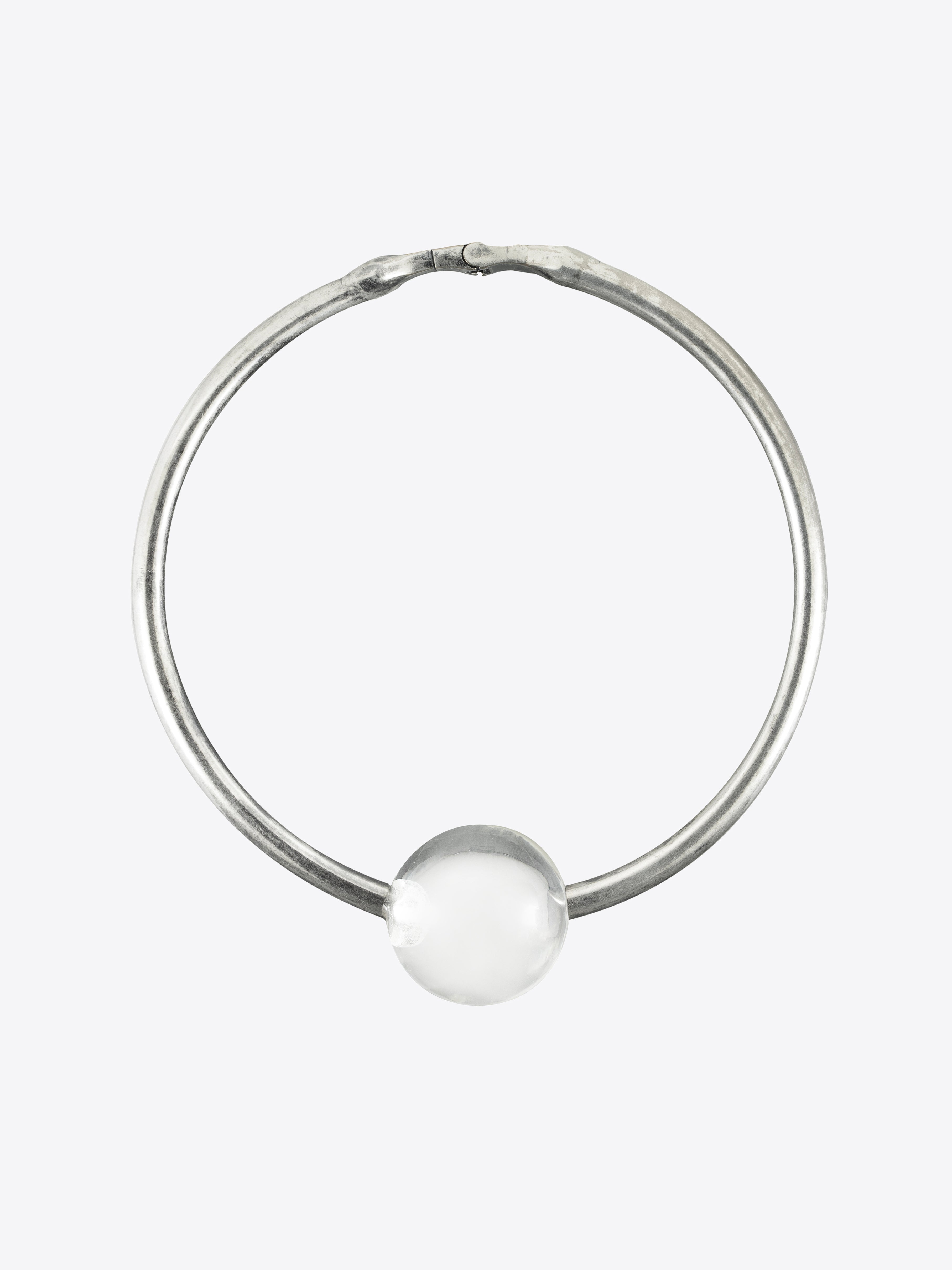 Rigid silver choker featuring a central resin sphere. Features a clean, minimal silhouette with an open adjustable back for a comfortable fit. Polished surface with slight handmade texture that highlights the artisanal process. Designed to be worn alone or layered with other necklaces. 100% Made in Italy
