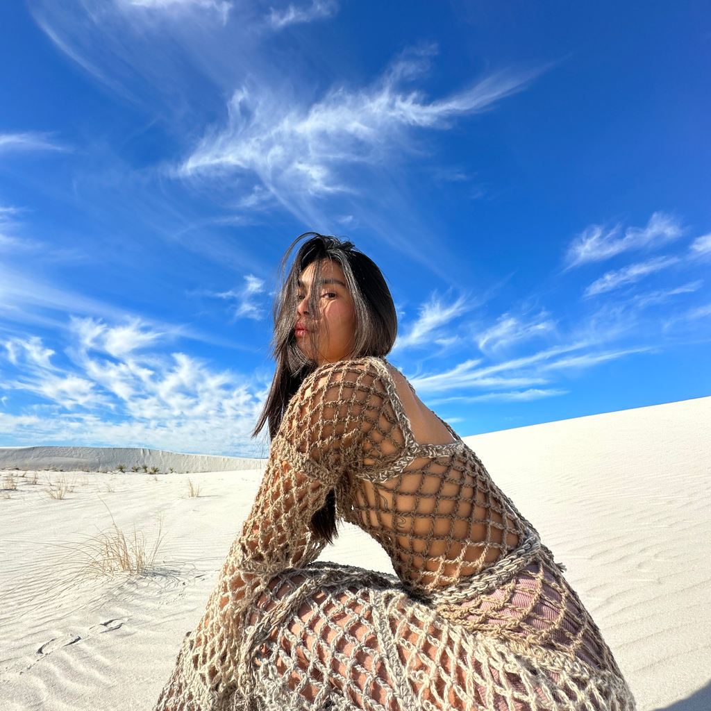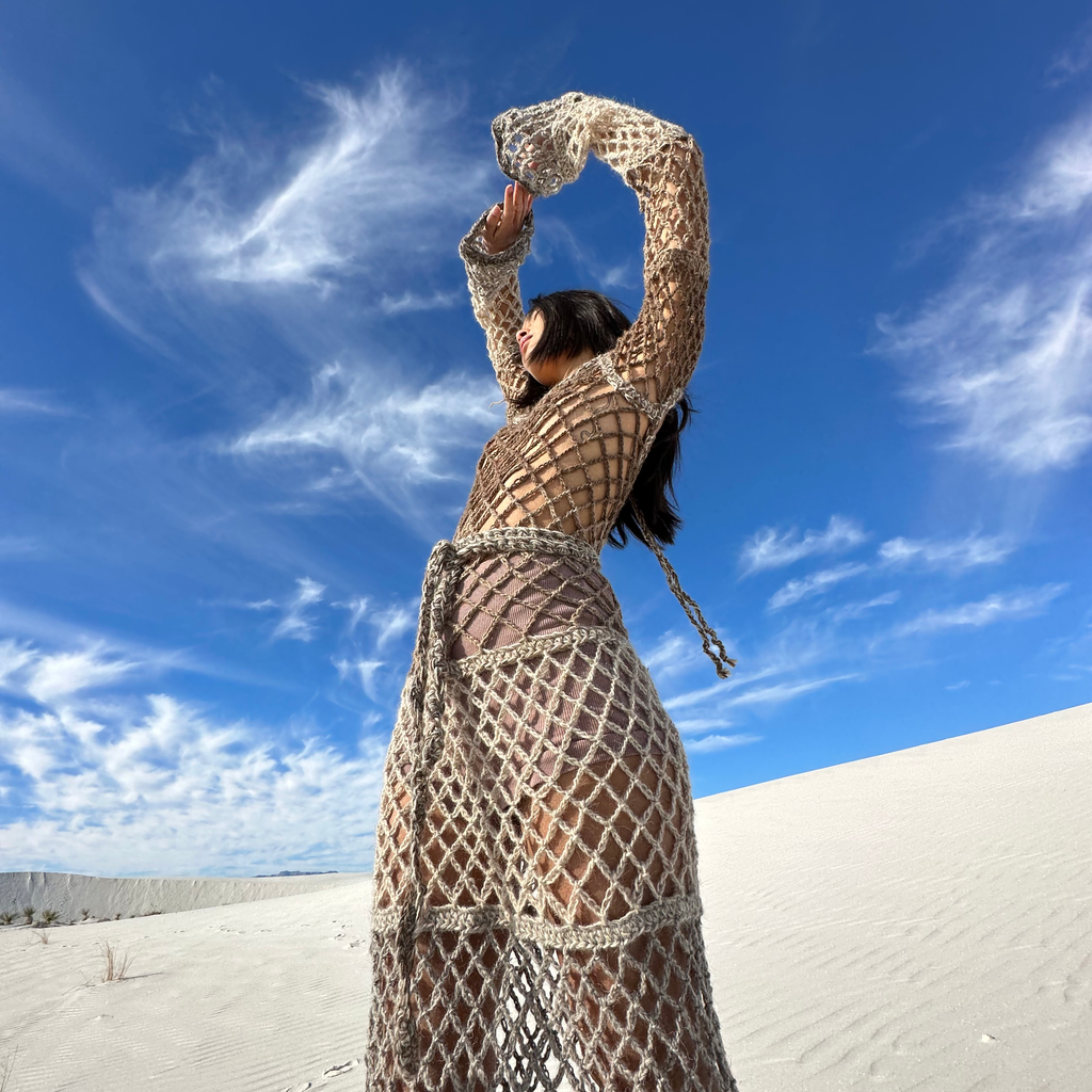 Hand-crochet Navajo-Churro Wool Gown by Lily Yeung.
