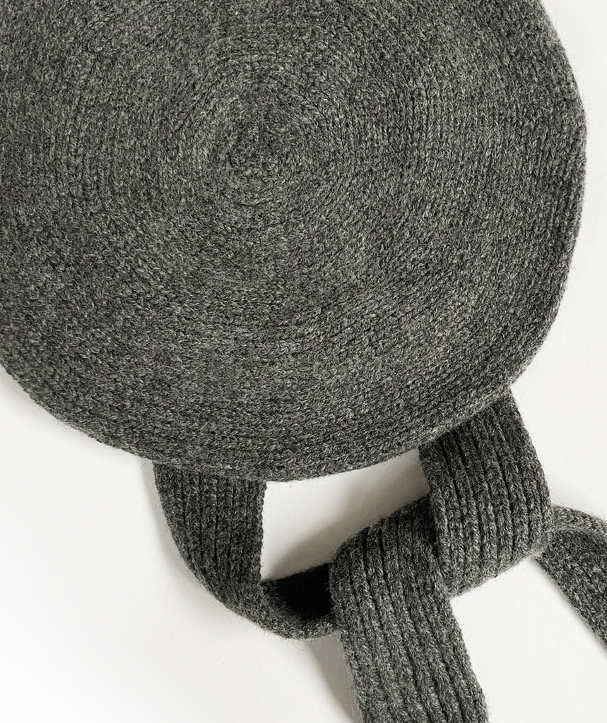 The panels and straps are handmade on domestic knitting machine, then the hat is assembled and finished by hand, washed and pressed.