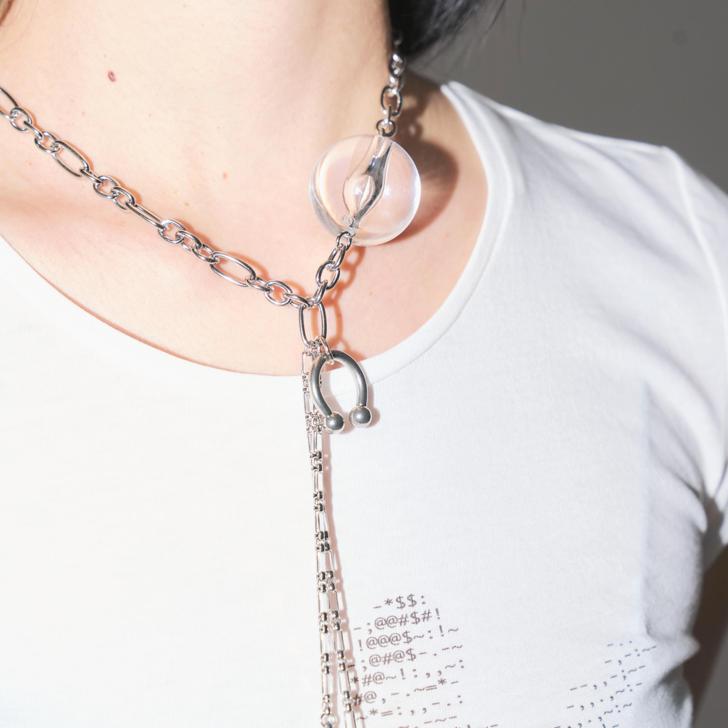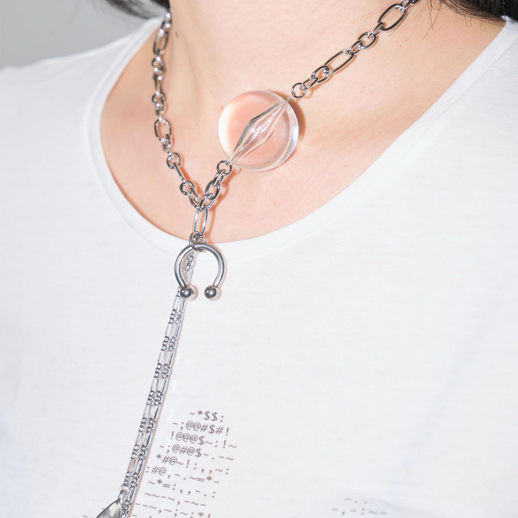 2-way statement necklace made of Stainless steel chains/ hardware with acrylic bead.