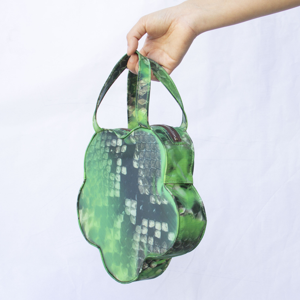 Holographic Lenticular Flower Handbag that changes colour and pattern as you move.
