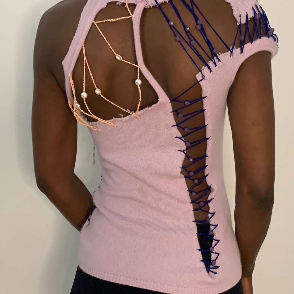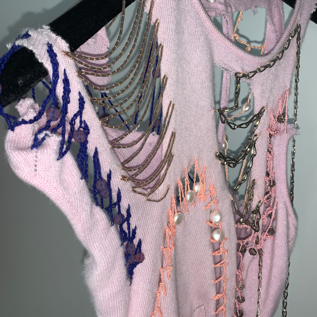 Lou de Bètoly is a French designer who works and lives in Berlin. Her main inspiration derives from chaos, surrealism, nostalgia, decadence, extravagance and oneirism. Adorned with embellishments, her intricately sensual crochet pieces reiterate her ‘wild at heart’ state of mind.