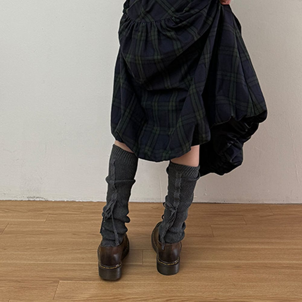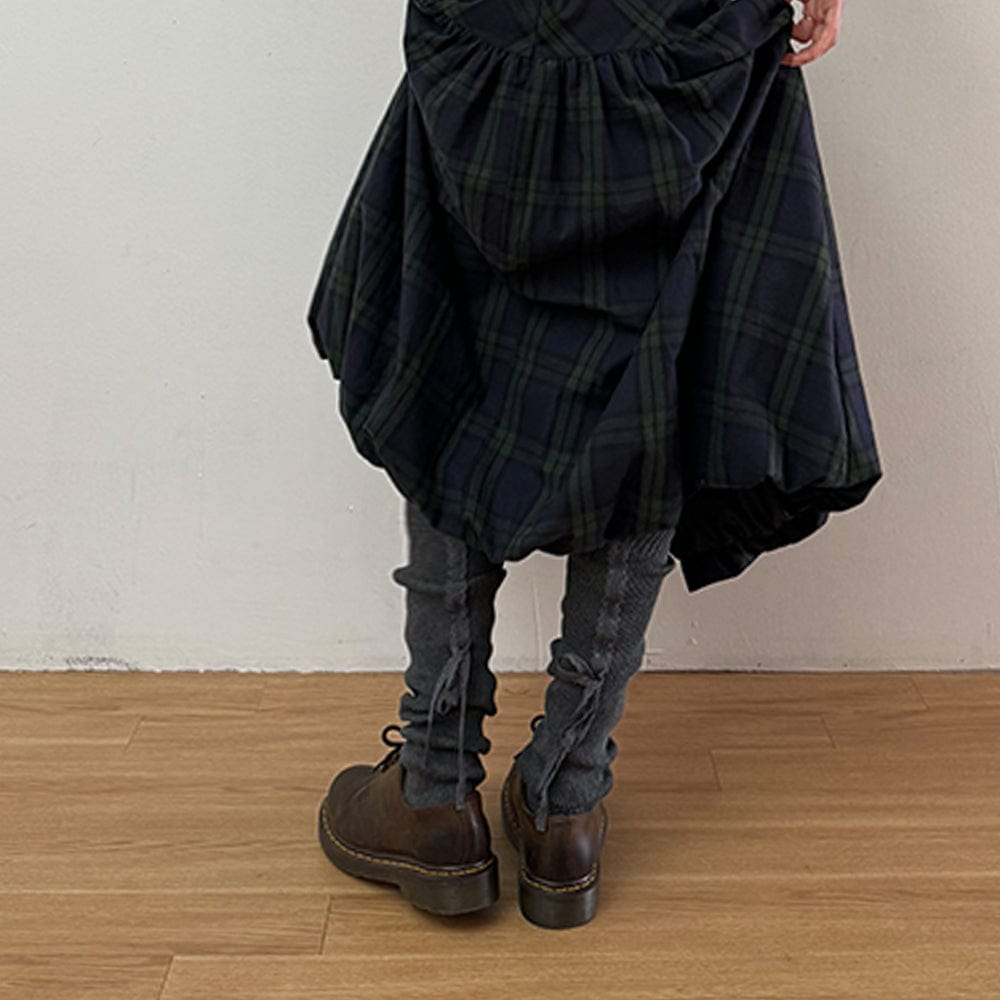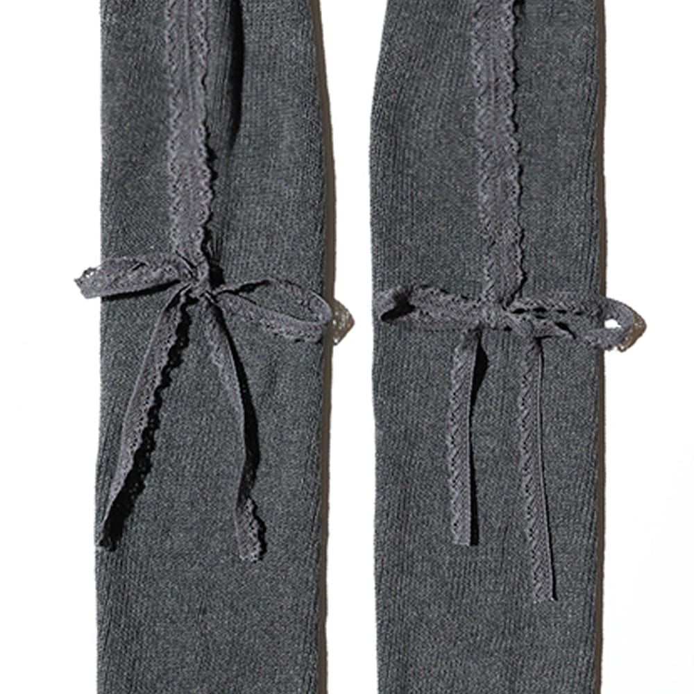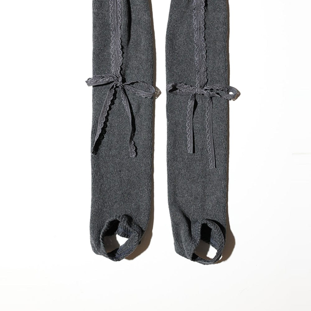 Lace ribbon leg warmers by SAENGIN STUDIOS.